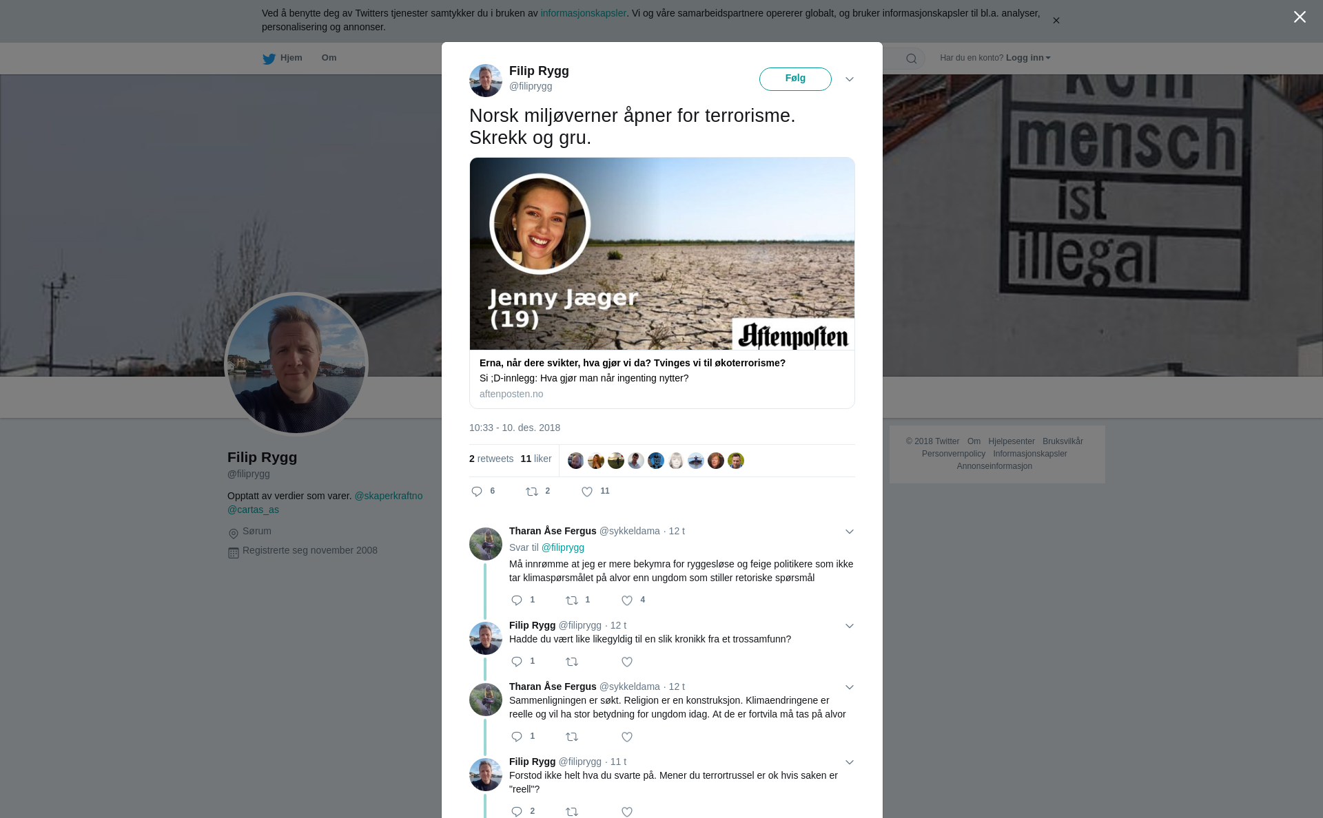 RT @filiprygg: Norsk miljøverner åpner for terrorisme. Skrekk og gru. https://t.co/AMqWaOJePd