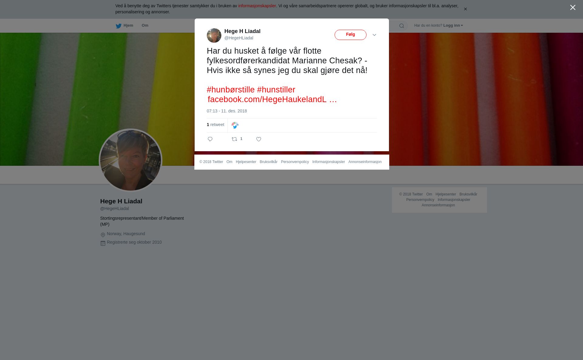 Har du husket å følge vår flotte fylkesordførerkandidat Marianne Chesak? - Hvis ikke så synes jeg du skal gjøre det nå! #hunbørstille #hunstiller https://t.co/QyIRCZmL8O