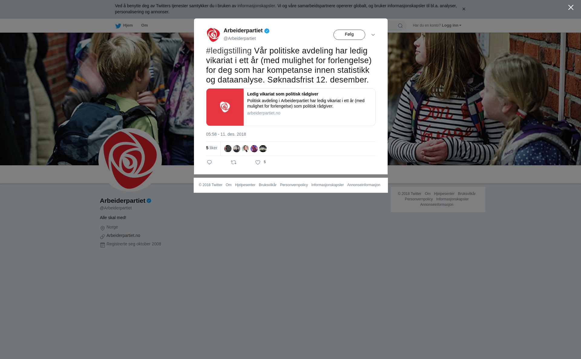 #ledigstilling Vår politiske avdeling har ledig vikariat i ett år (med mulighet for forlengelse) for deg som har kompetanse innen statistikk og dataanalyse. Søknadsfrist 12. desember. https://t.co/Q2ZJFElpCx