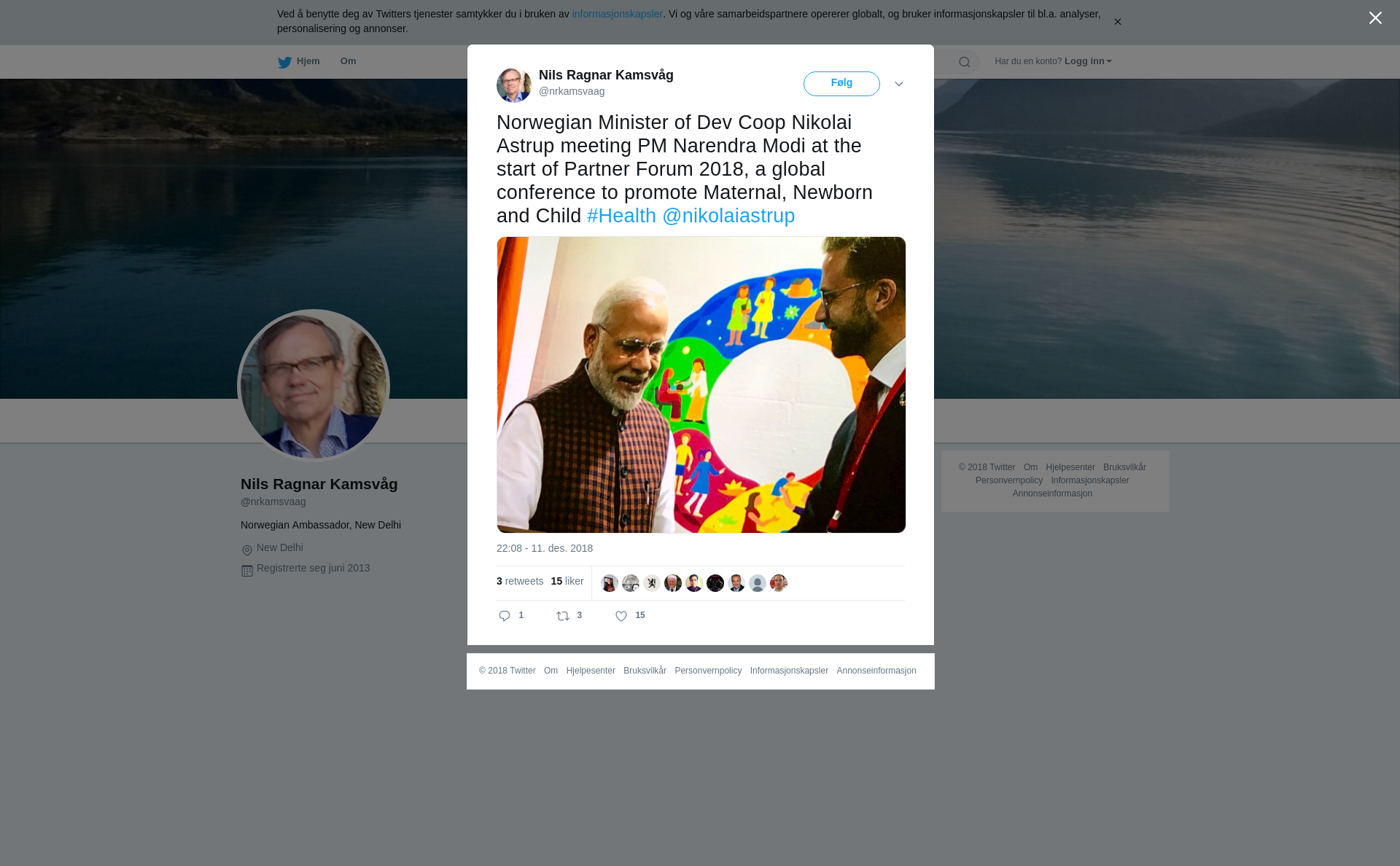RT @nrkamsvaag: Norwegian Minister of Dev Coop Nikolai Astrup meeting PM Narendra Modi at the start of Partner Forum 2018, a global conference to promote Maternal, Newborn and Child #Health @nikolaiastrup https://t.co/6eNNVXeGnB