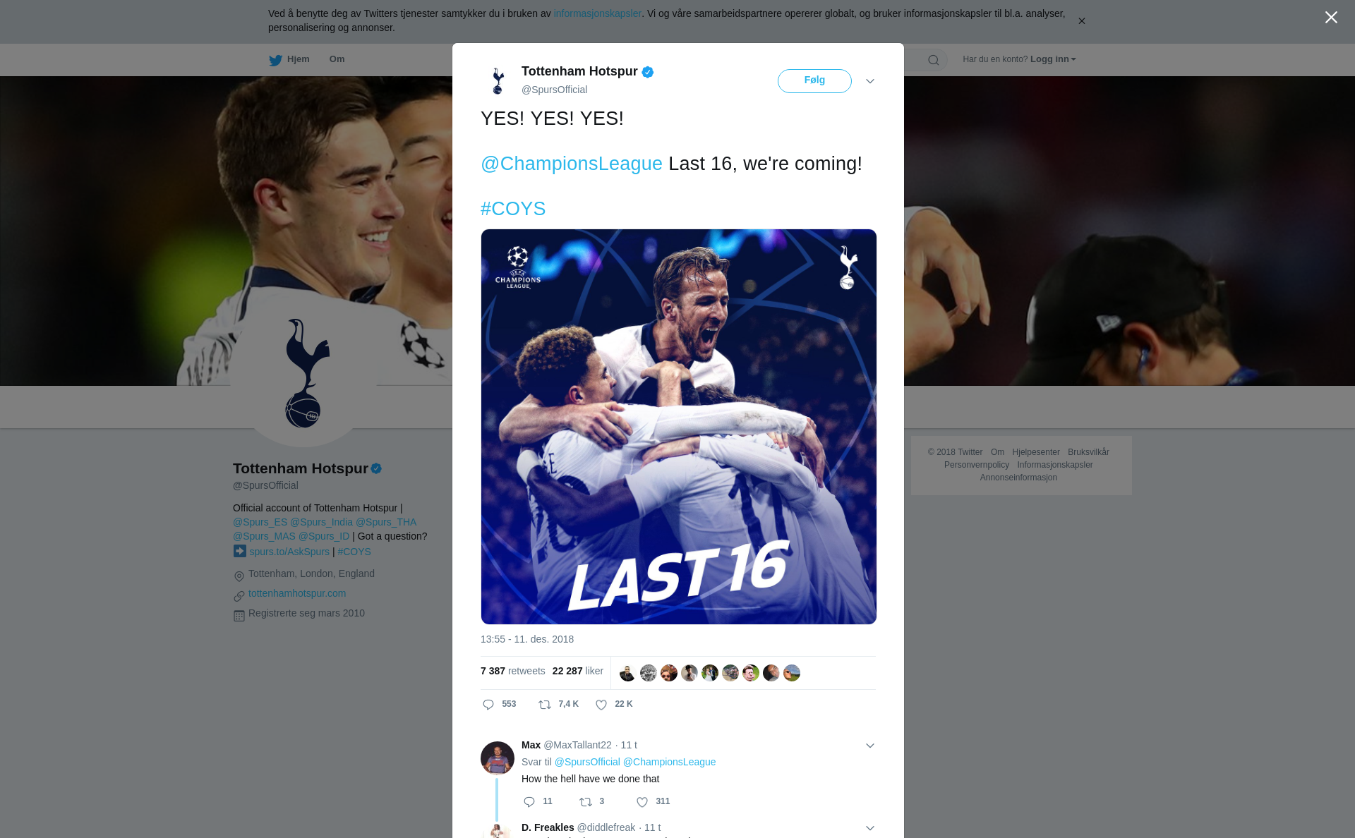RT @SpursOfficial: YES! YES! YES! @ChampionsLeague Last 16, we're coming! #COYS https://t.co/dc5xEpO5MH