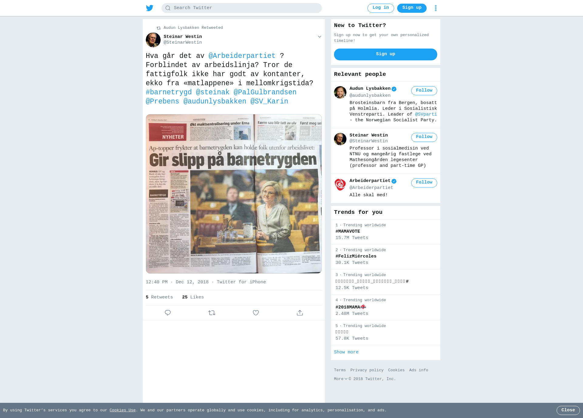 RT @SteinarWestin: Hva går det av @Arbeiderpartiet ? Forblindet av arbeidslinja? Tror de fattigfolk ikke har godt av kontanter, ekko fra «matlappene» i mellomkrigstida? #barnetrygd @steinak @PalGulbrandsen @Prebens @audunlysbakken @SV_Karin  https://t.co/QXxUdzAAdh