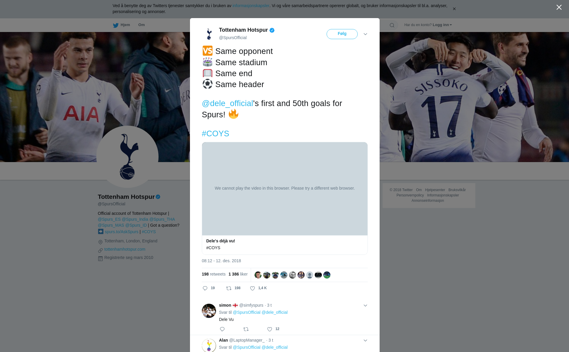 RT @SpursOfficial: 🆚 Same opponent 🏟 Same stadium 🥅 Same end ⚽ Same header @dele_official's first and 50th goals for Spurs! 🔥 #COYS htt…