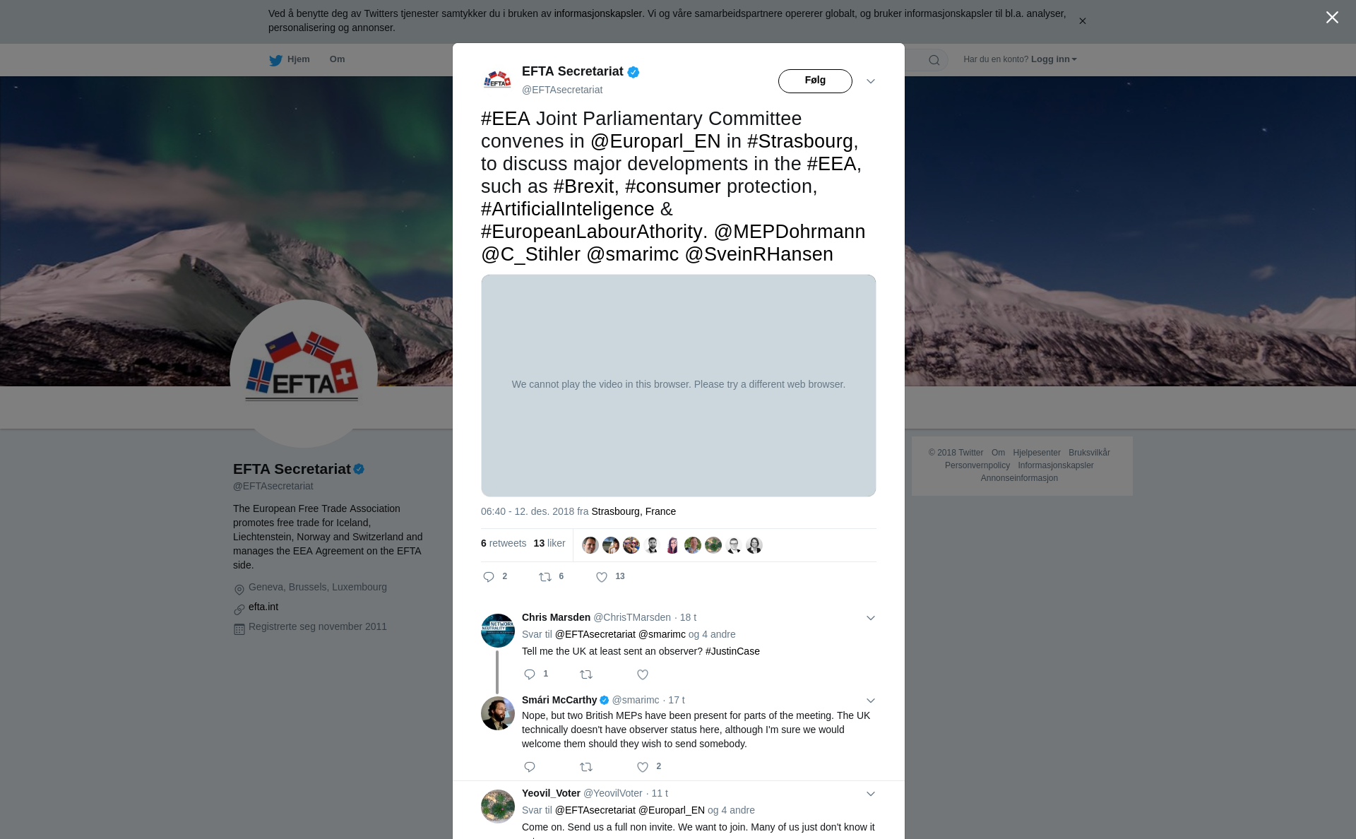 RT @EFTAsecretariat: #EEA Joint Parliamentary Committee convenes in @Europarl_EN in #Strasbourg, to discuss major developments in the #EEA, such as #Brexit, #consumer protection, #ArtificialInteligence & #EuropeanLabourAthority. @MEPDohrmann @C_Stihler @smarimc @SveinRHansen https://t.co/0TAmX8eiN4
