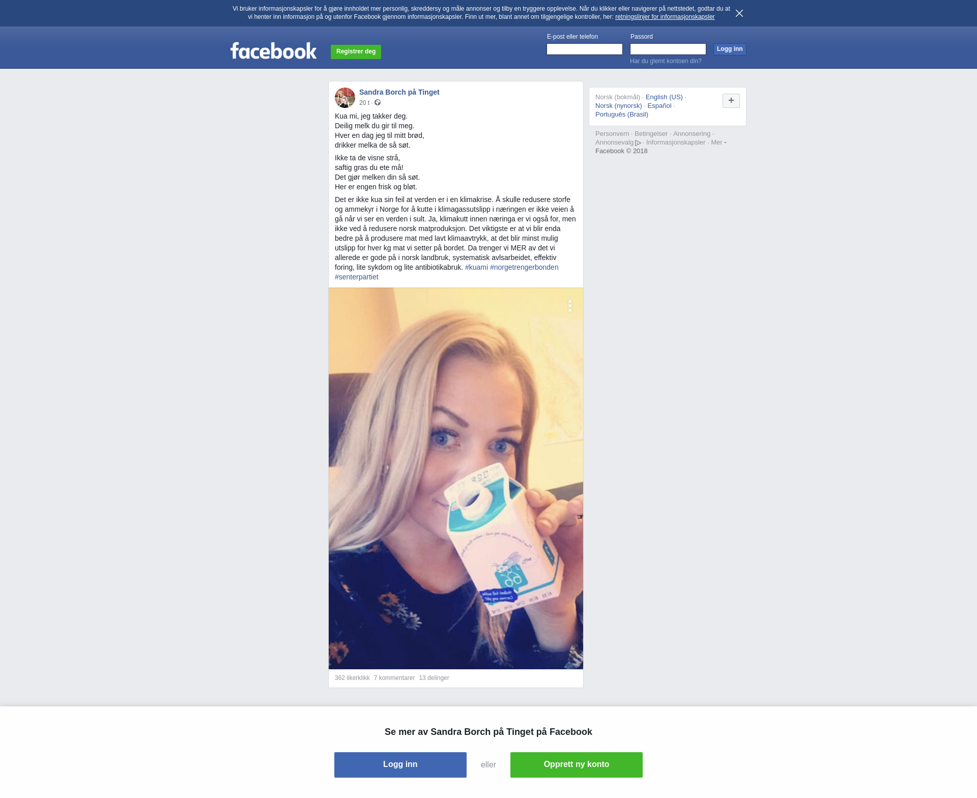 Det er ikke kua sin feil at verden er i en klimakrise. Å skulle redusere storfe og ammekyr i Norge for å kutte i klimagassutslipp i næringen er ikke veien å gå når vi ser en verden i sult. Ja, klimakutt innen næringa er vi også for, men ikke ved å redusere norsk matproduksjon. Det viktigste er at vi blir enda bedre på å produsere mat med lavt klimaavtrykk, at det blir minst mulig utslipp for hver kg mat vi setter på bordet. Da trenger vi MER av det vi allerede er gode på i norsk landbruk, systematisk avlsarbeidet, effektiv foring, lite sykdom og lite antibiotikabruk. #kuami #norgetrengerbonden #senterpartiet