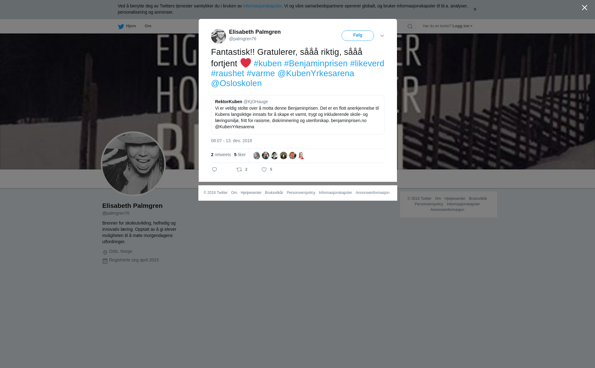 RT @palmgren76: Fantastisk!! Gratulerer, sååå riktig, sååå fortjent ❤ #kuben #Benjaminprisen #likeverd #raushet #varme @KubenYrkesarena @Osloskolen https://t.co/Bwns2CYMyP
