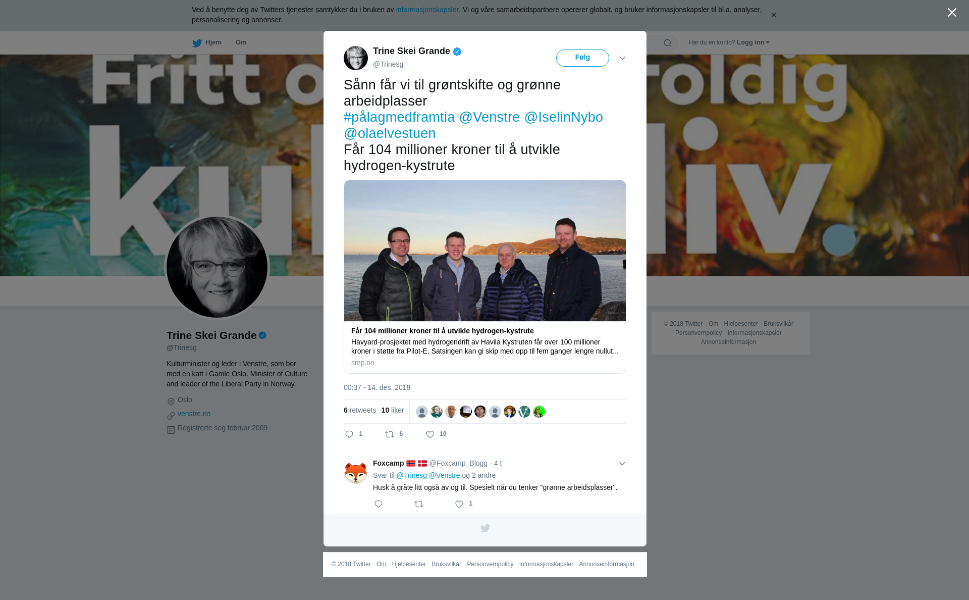 RT @Trinesg: Sånn får vi til grøntskifte og grønne arbeidplasser #pålagmedframtia @Venstre @IselinNybo @olaelvestuen Får 104 million…