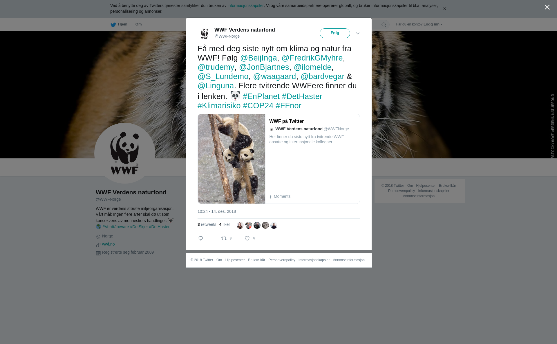 RT @WWFNorge: Få med deg siste nytt om klima og natur fra WWF! Følg @BeijInga, @FredrikGMyhre, @trudemy, @JonBjartnes, @ilomelde, @S_Lundemo, @waagaard, @bardvegar & @Linguna. Flere tvitrende WWFere finner du i lenken. 🐼 #EnPlanet #DetHaster #Klimarisiko #COP24 #FFnor https://t.co/ZJPGx0dfhg