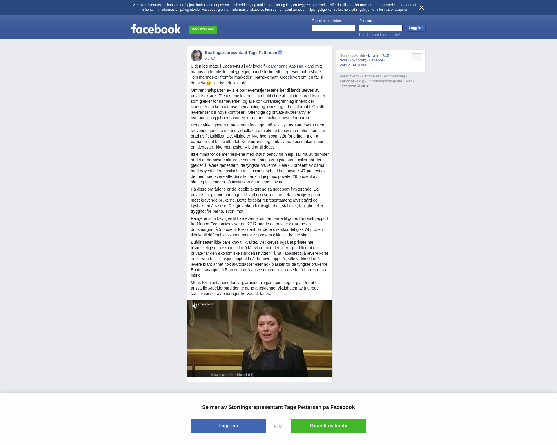 Siden jeg måtte i Dagsnytt18 i går kveld fikk Marianne Aas Haukland mitt manus og fremførte innlegget jeg hadde forberedt i representantforslaget "om mennesker fremfor markeder i barnevernet". Godt levert om jeg får si det selv :-) Her kan du lese det: