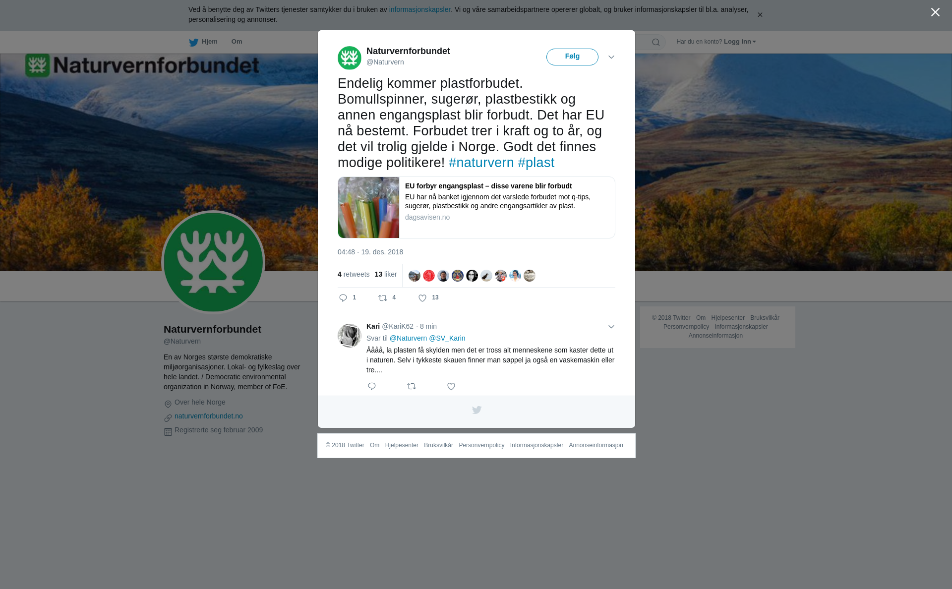 RT @Naturvern: Endelig kommer plastforbudet. Bomullspinner, sugerør, plastbestikk og annen engangsplast blir forbudt. Det har EU nå bestemt. Forbudet trer i kraft og to år, og det vil trolig gjelde i Norge. Godt det finnes modige politikere! #naturvern #plast