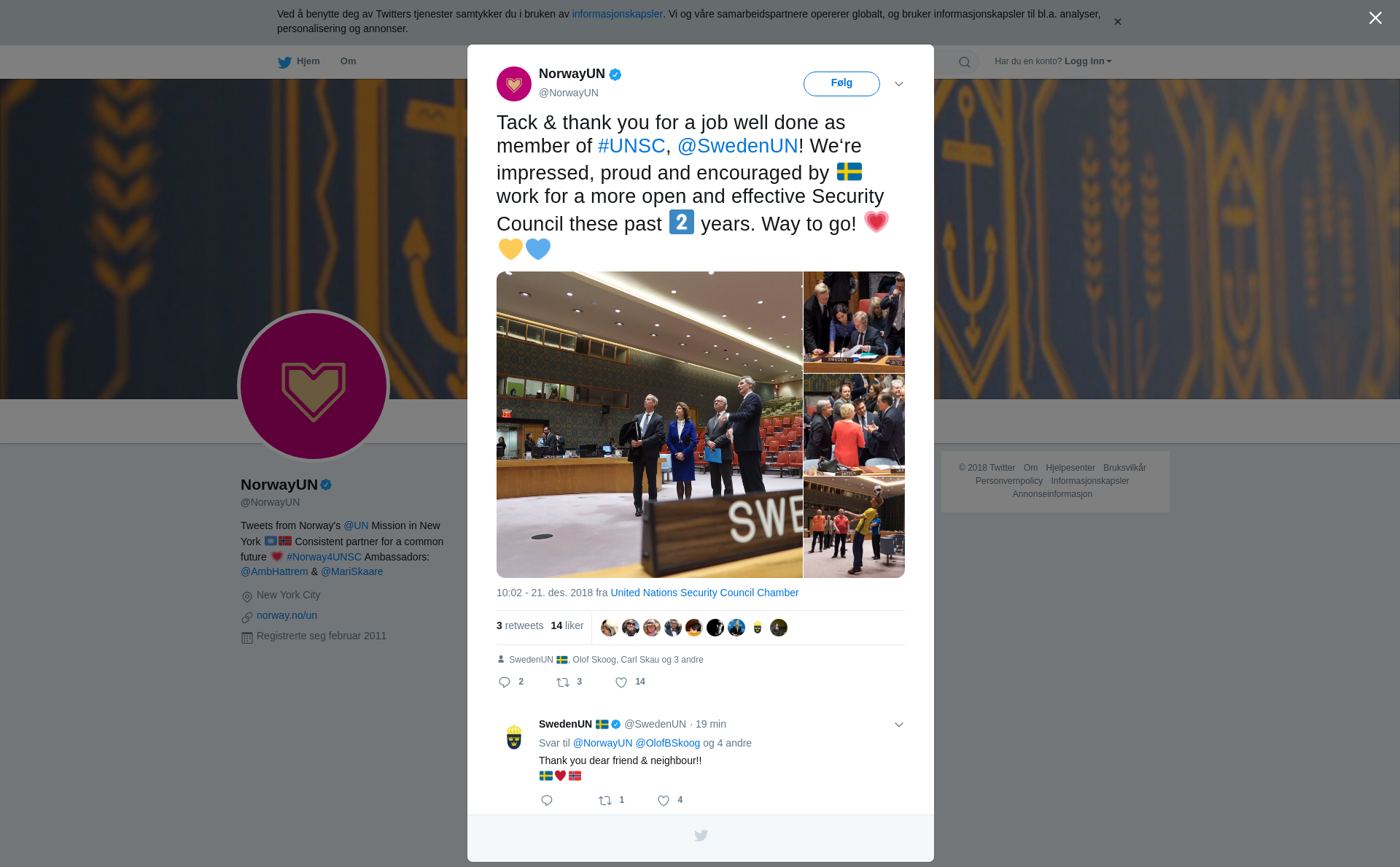 RT @NorwayUN: Tack & thank you for a job well done as member of #UNSC, @SwedenUN! We‘re impressed, proud and encouraged by 🇸🇪 work for a more open and effective Security Council these past 2️⃣ years. Way to go! 💗💛💙 https://t.co/09l5BfU9CK