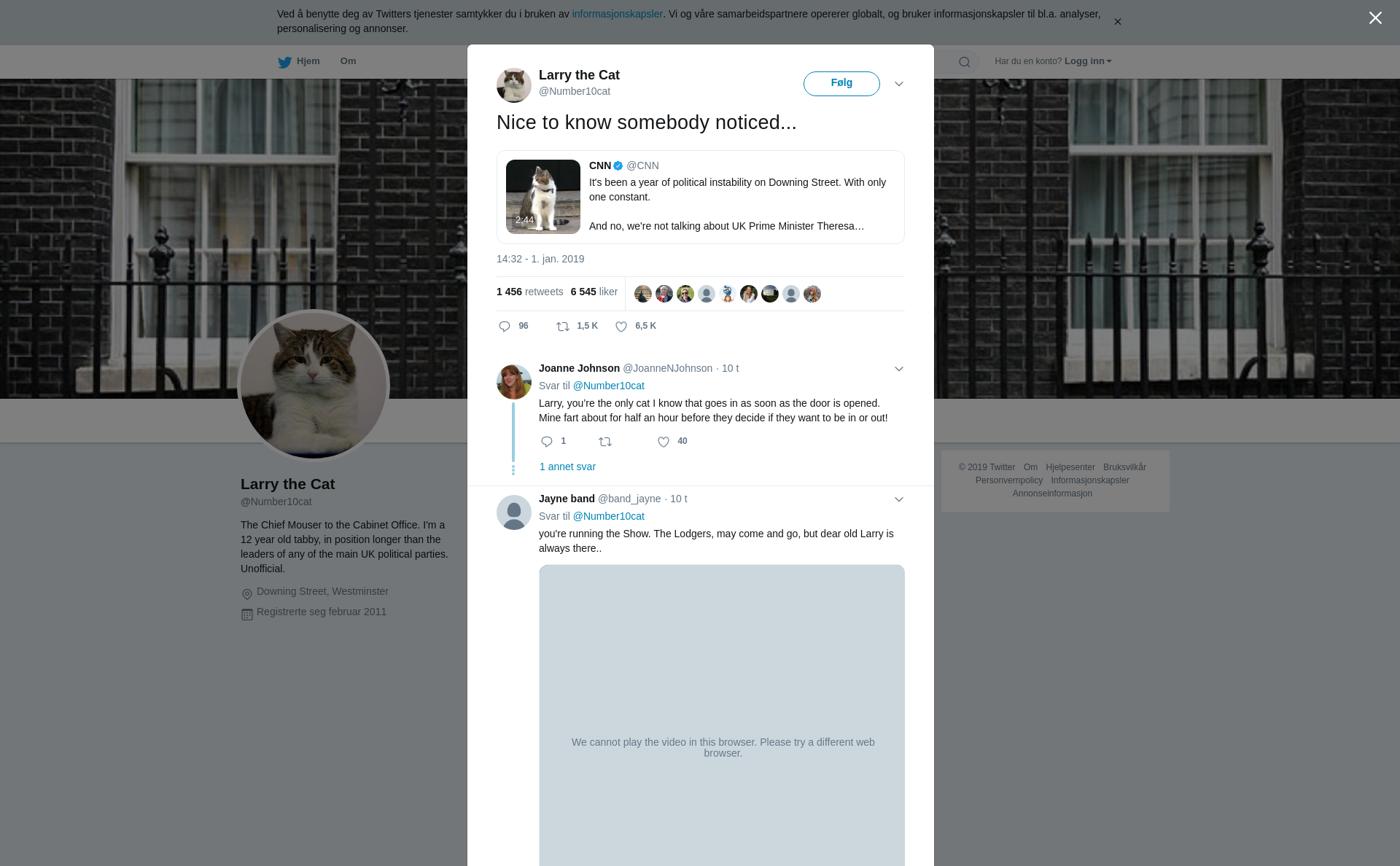 “It's been a year of political instability on Downing Street. With only one constant. And no, we're not talking about UK Prime Minister Theresa May. We're talking about Larry the Cat. https://t.co/gzA8XDbJz5”