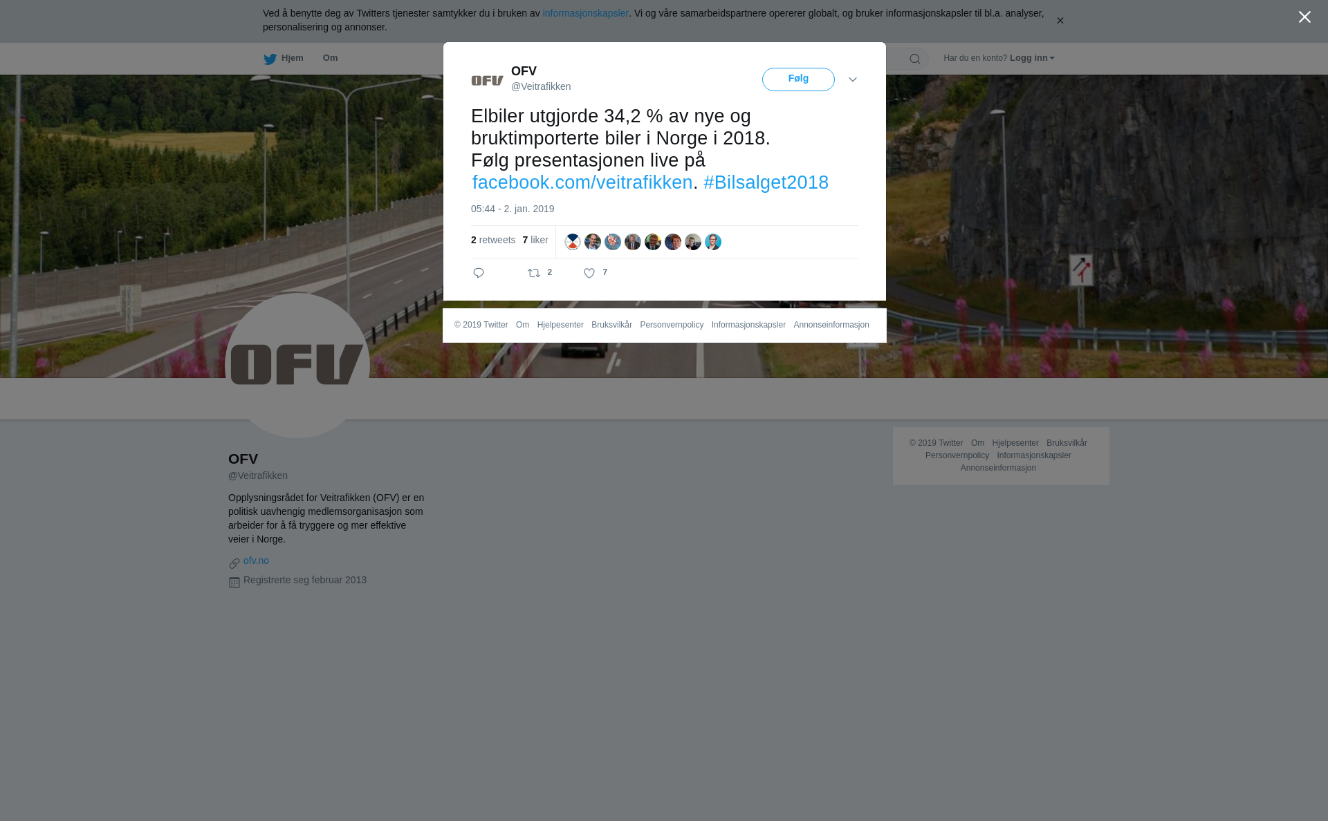 RT @Veitrafikken: Elbiler utgjorde 34,2 % av nye og bruktimporterte biler i Norge i 2018. Følg presentasjonen live på https://t.co/mzQJG8D…