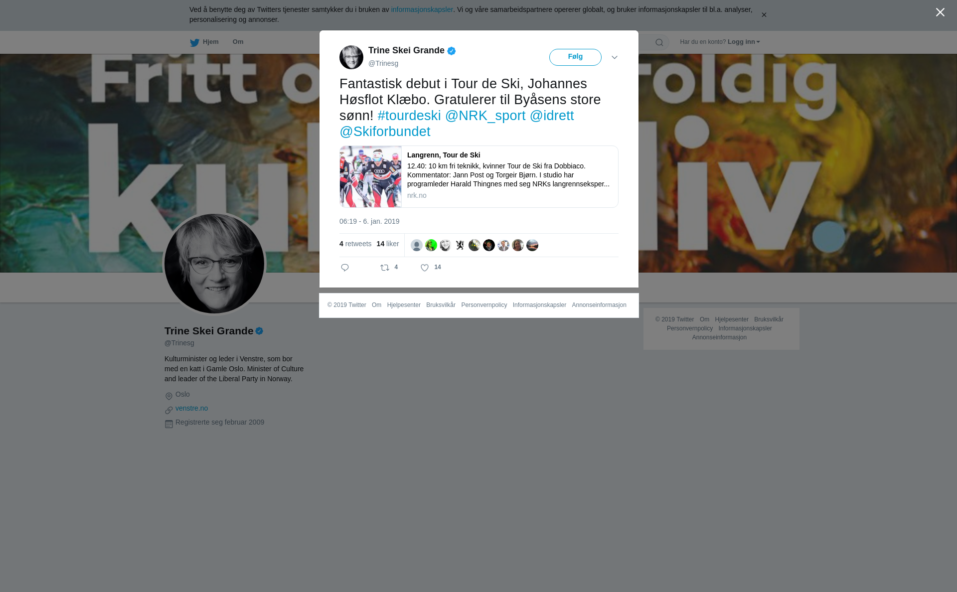 12.50: Tour de Ski: 9 km jaktstart, kvinner. 14.45: 9 km jaktstart, menn. Fra Val di Fiemme, Italia. Komm: Jann Post og Torgeir Bjørn. I studio har programleder Carina Olset med seg NRKs langrennsekspert Fredrik Aukland.