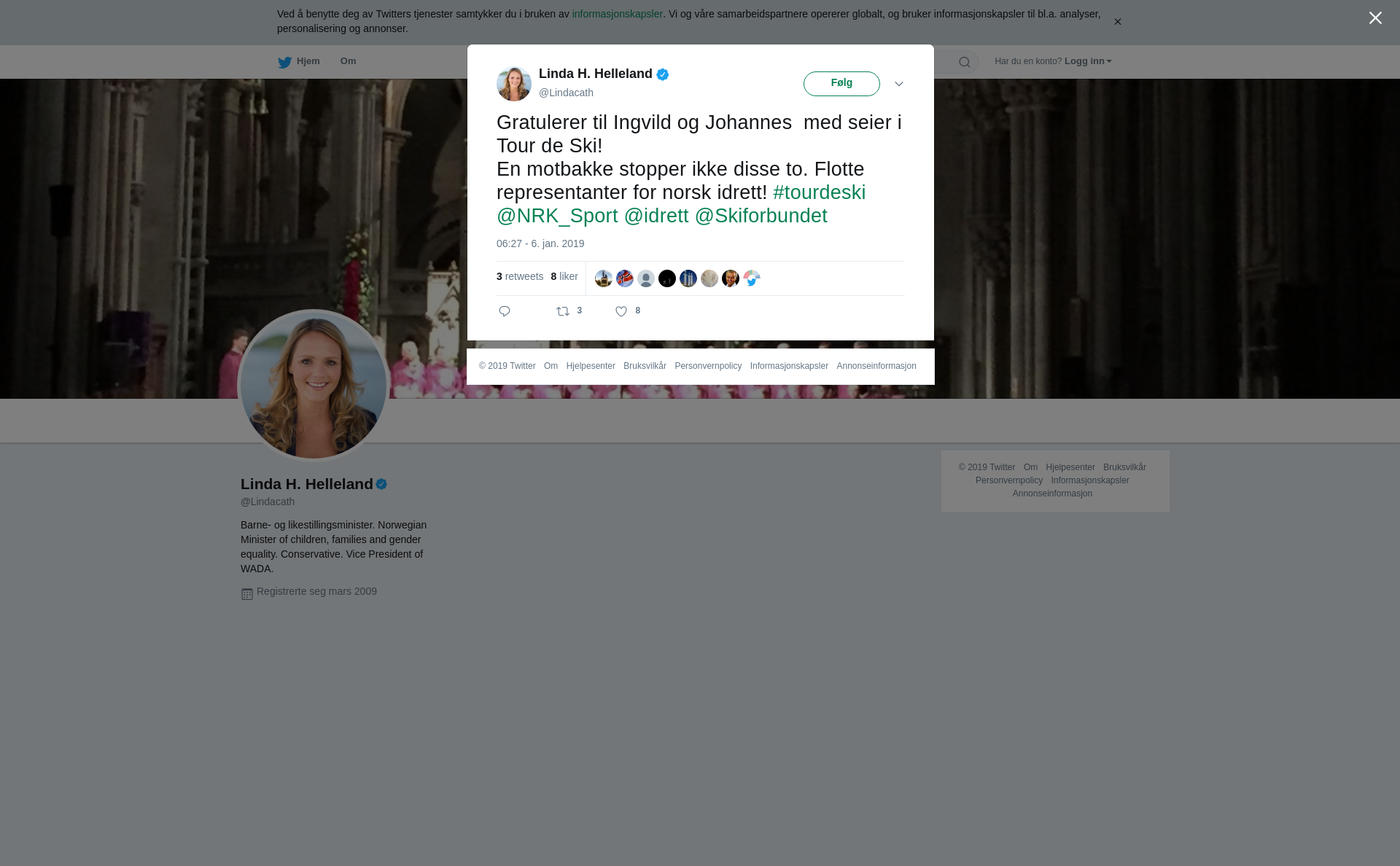 Gratulerer til Ingvild og Johannes med seier i Tour de Ski! En motbakke stopper ikke disse to. Flotte representanter for norsk idrett! #tourdeski @NRK_Sport @idrett @Skiforbundet