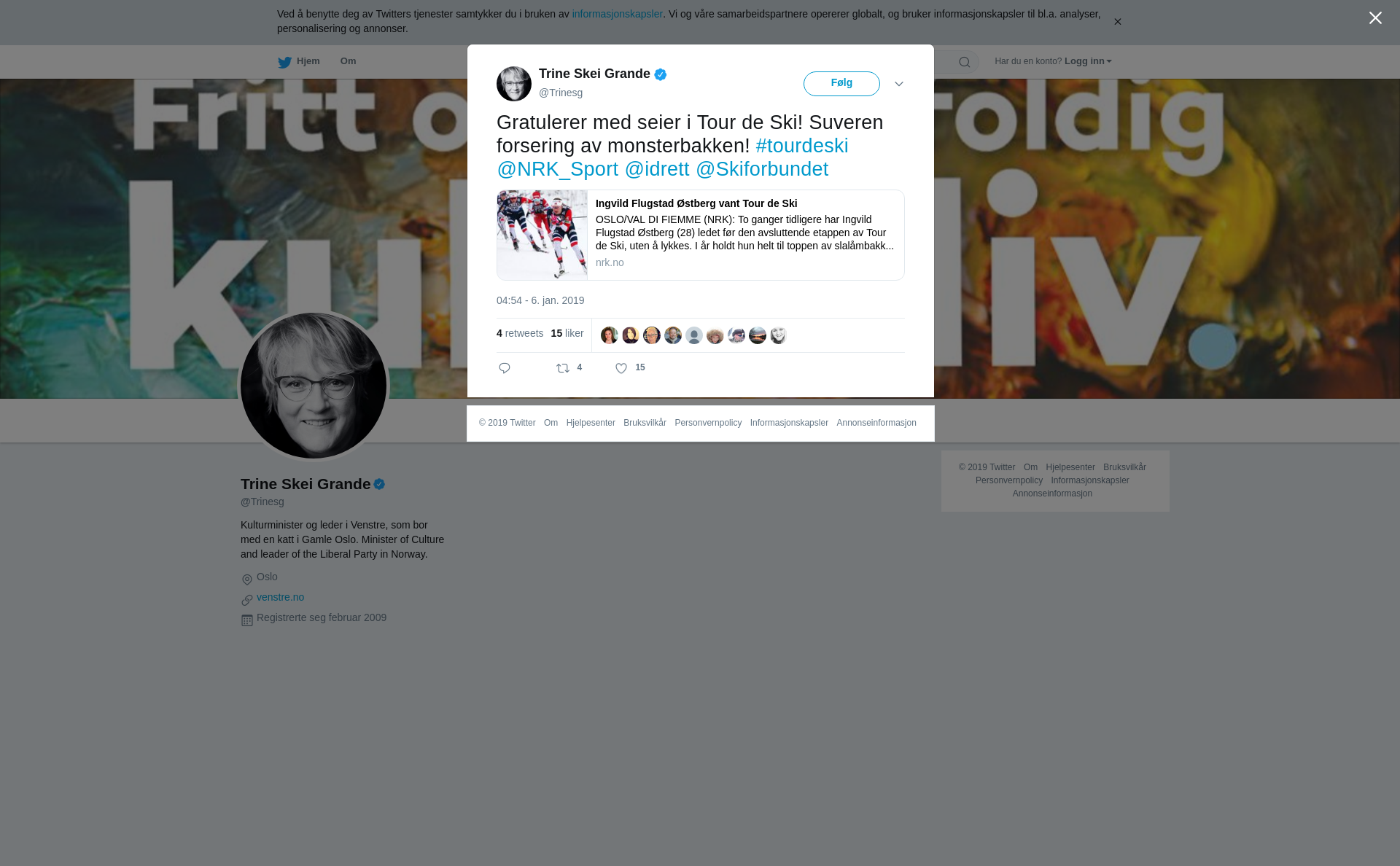 RT @Trinesg: Gratulerer med seier i Tour de Ski! Suveren forsering av monsterbakken! #tourdeski @NRK_Sport @idrett @Skiforbundet https://t.co/jIhifIvBUE