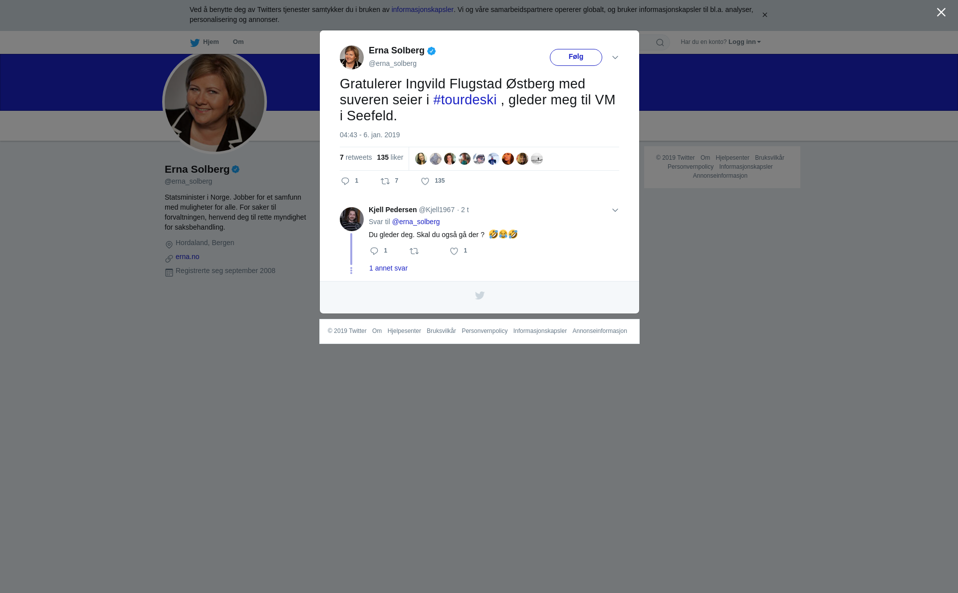 RT @erna_solberg: Gratulerer Ingvild Flugstad Østberg med suveren seier i #tourdeski , gleder meg til VM i Seefeld.