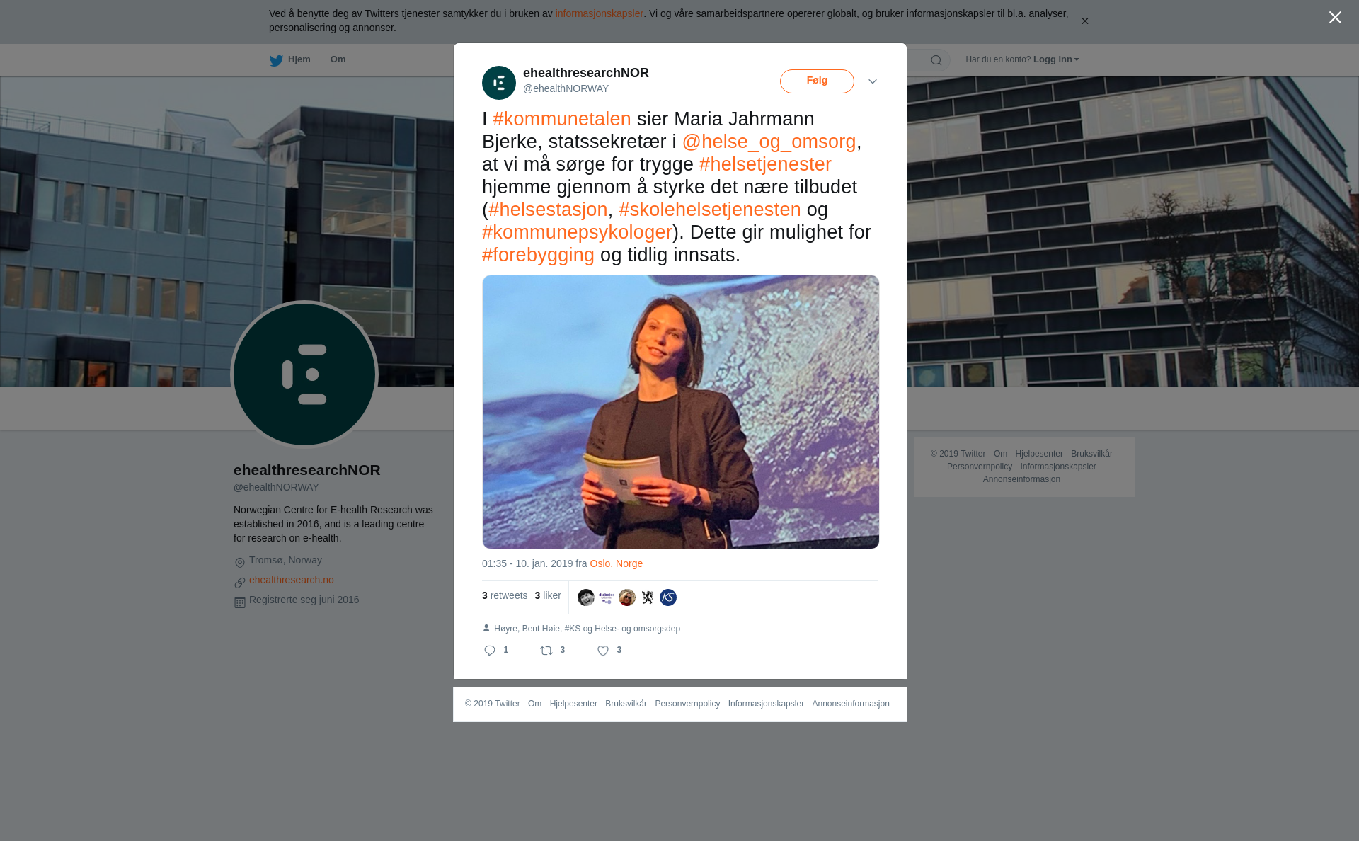 RT @ehealthNORWAY: I #kommunetalen sier Maria Jahrmann Bjerke, statssekretær i @helse_og_omsorg, at vi må sørge for trygge #helsetjenester hjemme gjennom å styrke det nære tilbudet (#helsestasjon, #skolehelsetjenesten og #kommunepsykologer). Dette gir mulighet for #forebygging og tidlig innsats. https://t.co/BsmxTpIdEB