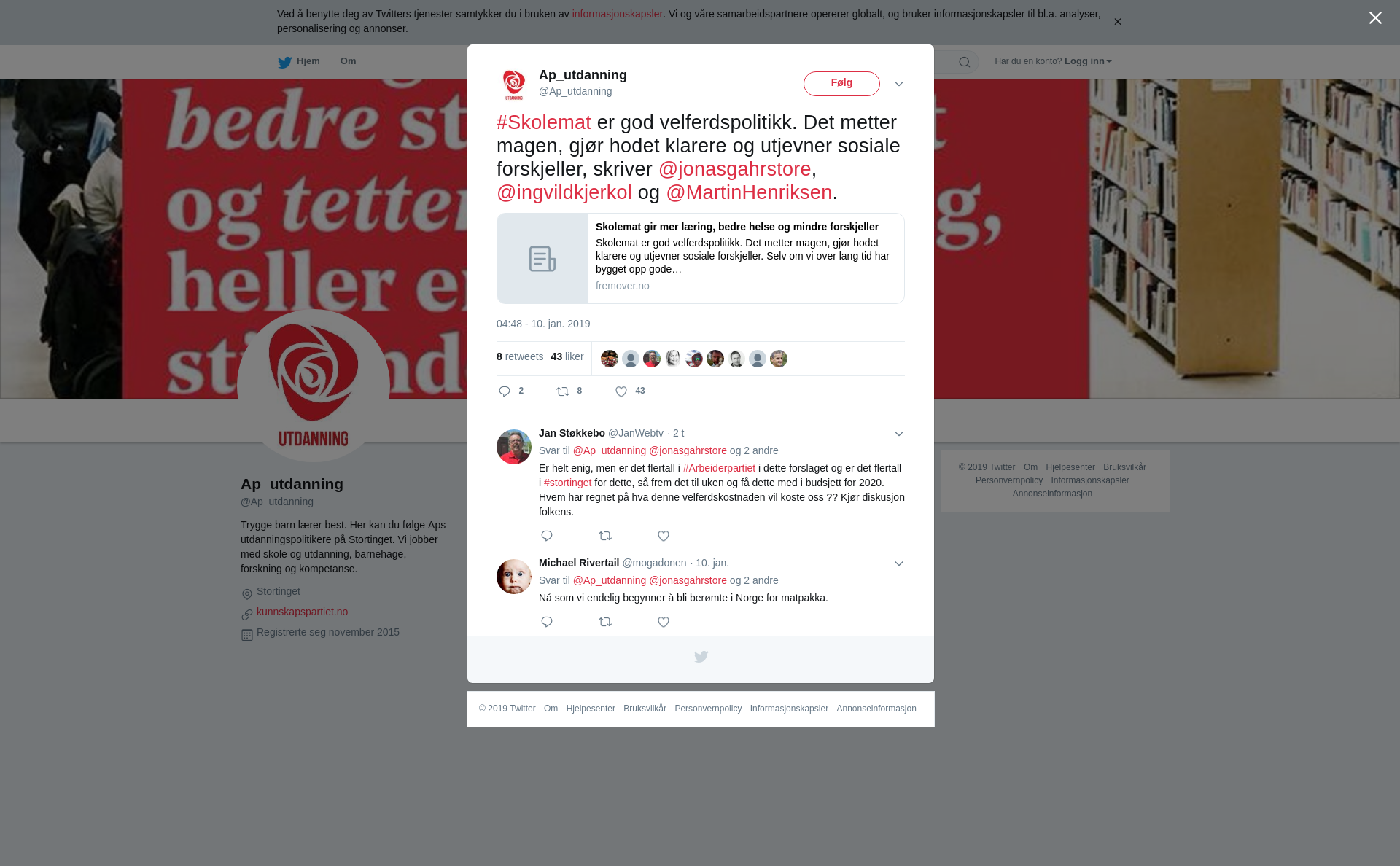 RT @Ap_utdanning: #Skolemat er god velferdspolitikk. Det metter magen, gjør hodet klarere og utjevner sosiale forskjeller, skriver @jonasgahrstore, @ingvildkjerkol og @MartinHenriksen. https://t.co/QxKaoriwL5