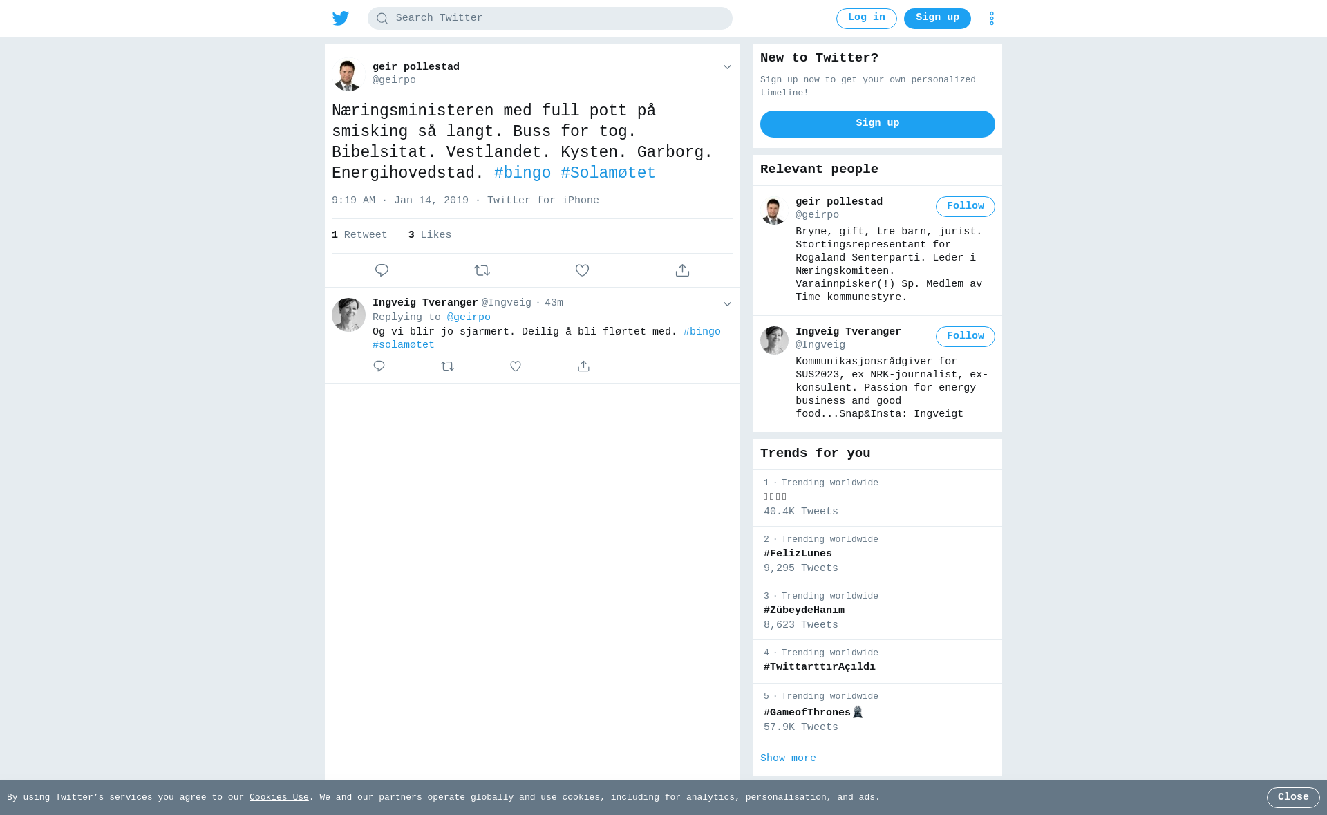 Næringsministeren med full pott på smisking så langt. Buss for tog. Bibelsitat. Vestlandet. Kysten. Garborg. Energihovedstad. #bingo #Solamøtet