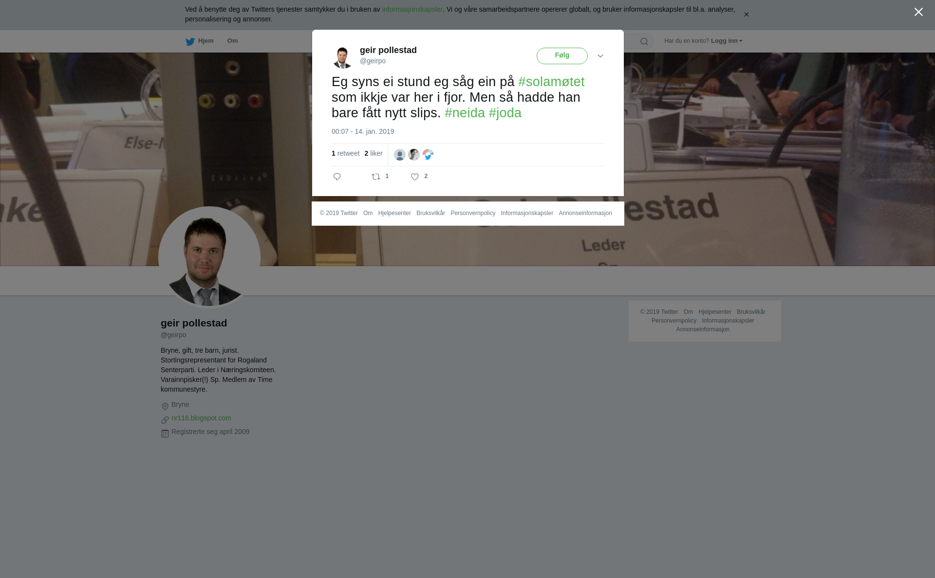 Eg syns ei stund eg såg ein på #solamøtet som ikkje var her i fjor. Men så hadde han bare fått nytt slips. #neida #joda