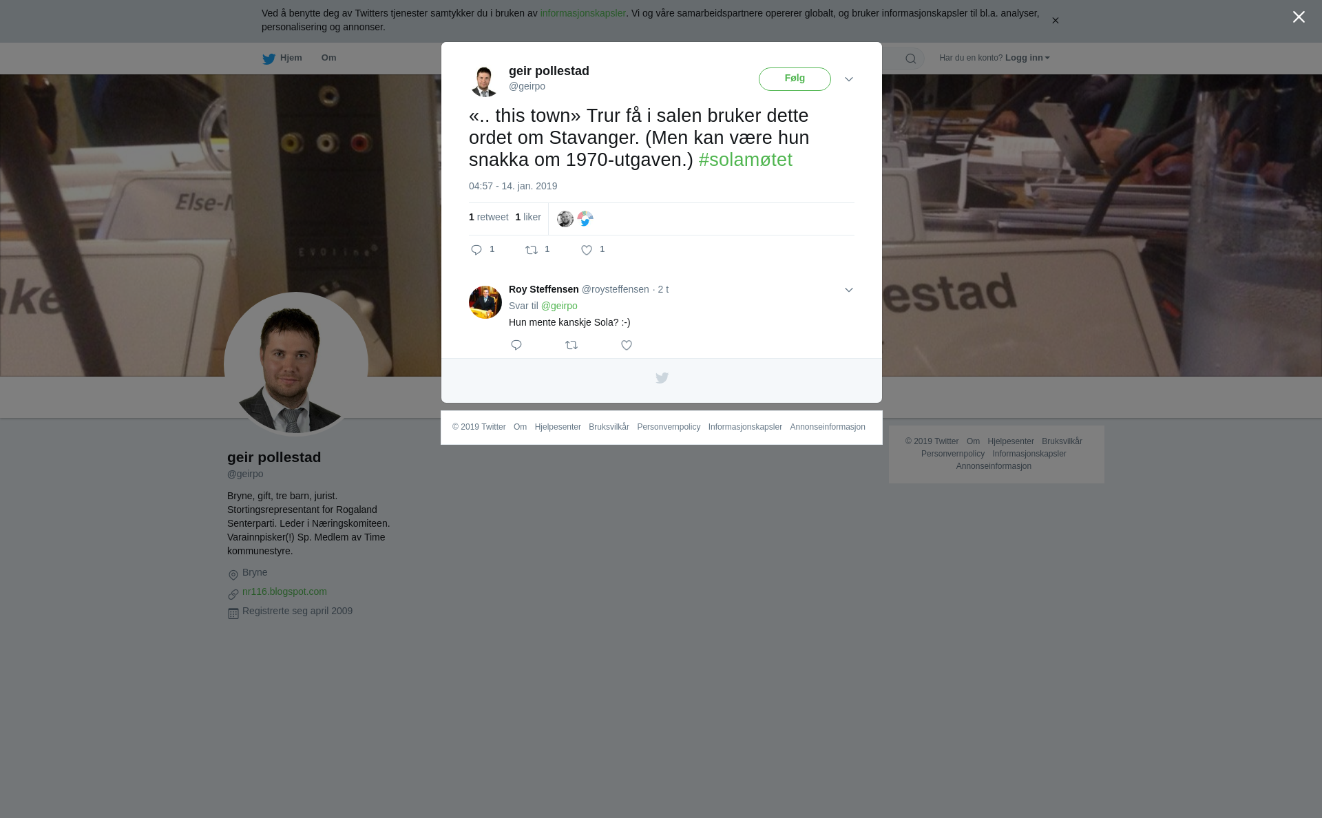 «.. this town» Trur få i salen bruker dette ordet om Stavanger. (Men kan være hun snakka om 1970-utgaven.) #solamøtet