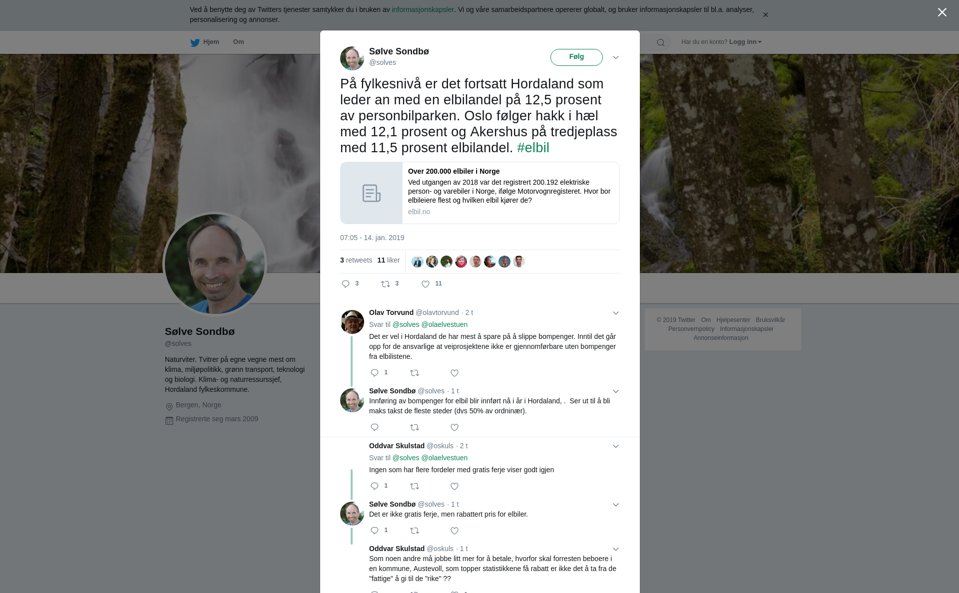RT @solves: På fylkesnivå er det fortsatt Hordaland som leder an med en elbilandel på 12,5 prosent av personbilparken. Oslo følger hakk i hæl med 12,1 prosent og Akershus på tredjeplass med 11,5 prosent elbilandel. #elbil https://t.co/Ta80voQWaw