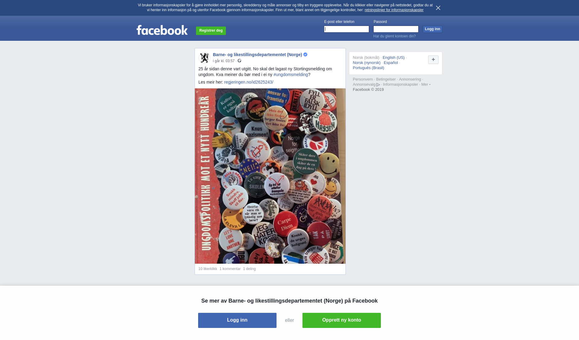 25 år sidan denne vart utgitt. No skal det lagast ny Stortingsmelding om ungdom. Kva meiner du bør med i ei ny #ungdomsmelding? Les meir her: regjeringen.no/id2625243/