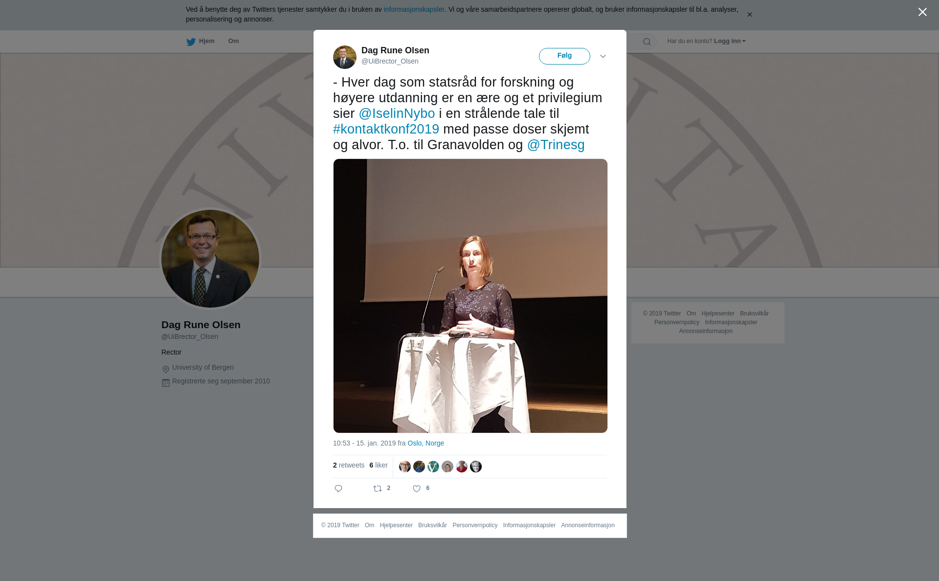 RT @UiBrector_Olsen: - Hver dag som statsråd for forskning og høyere utdanning er en ære og et privilegium sier @IselinNybo i en strålende tale til #kontaktkonf2019 med passe doser skjemt og alvor. T.o. til Granavolden og @Trinesg https://t.co/nE0SsEn06s