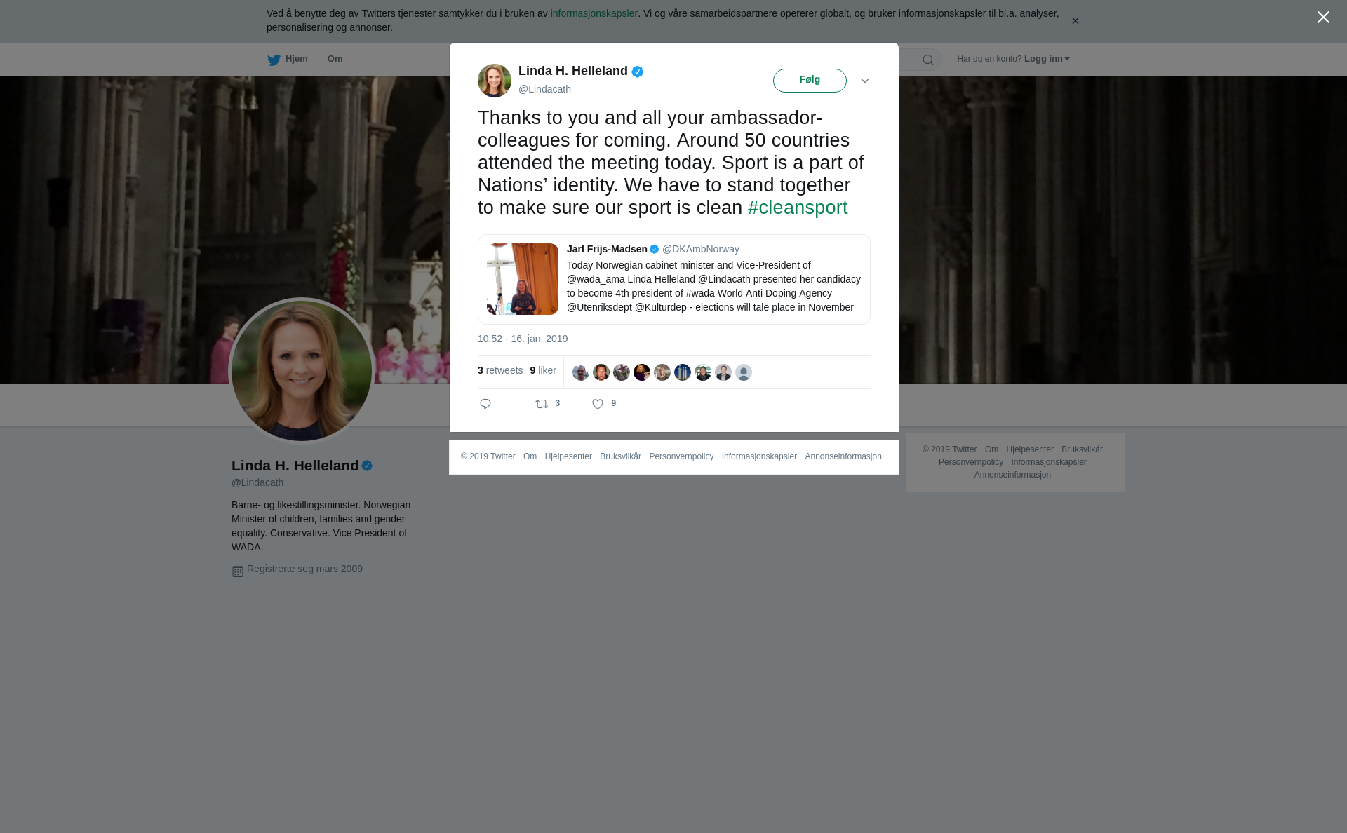 Thanks to you and all your ambassador-colleagues for coming. Around 50 countries attended the meeting today. Sport is a part of Nations’ identity. We have to stand together to make sure our sport is clean #cleansport