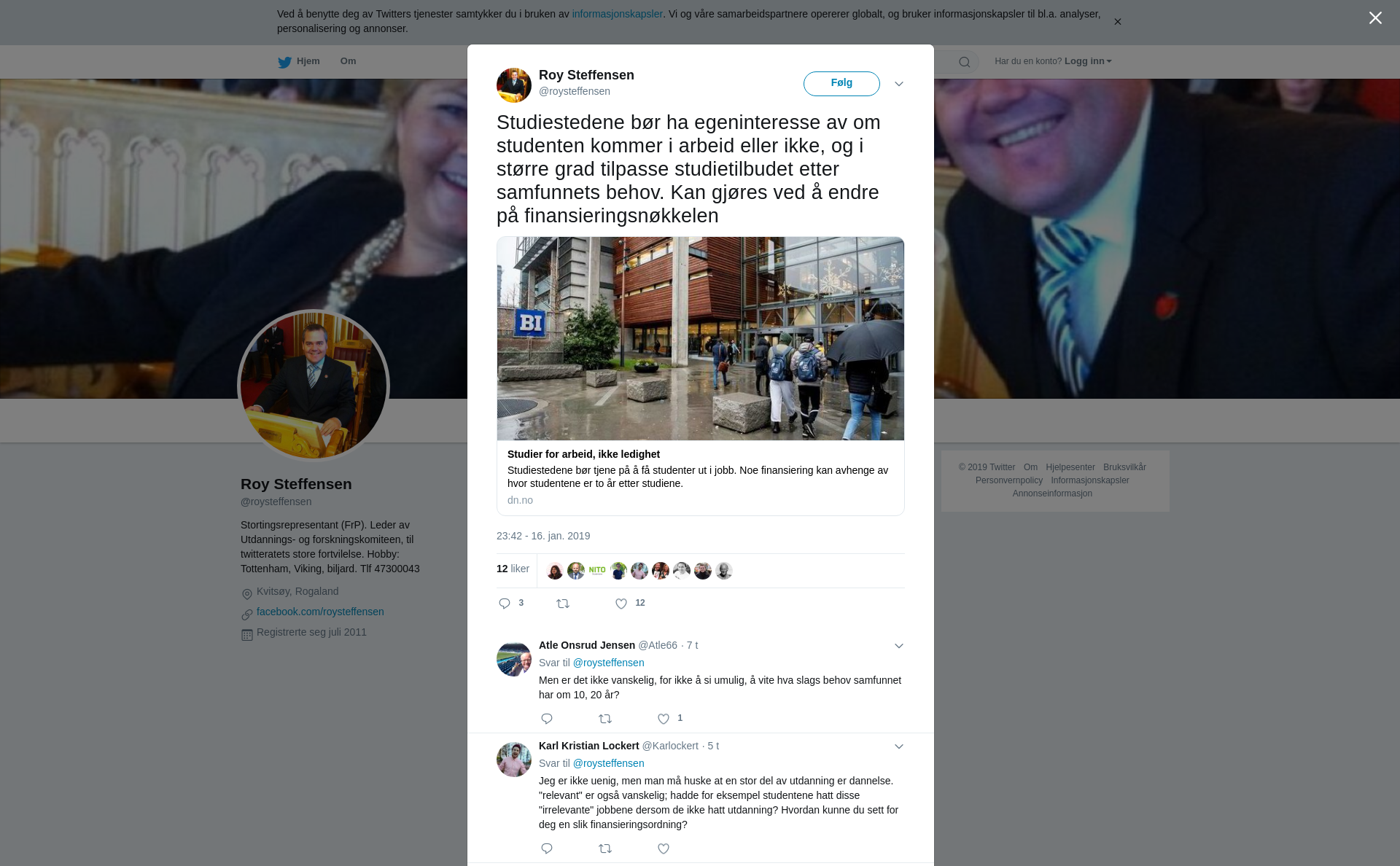 RT @roysteffensen: Studiestedene bør ha egeninteresse av om studenten kommer i arbeid eller ikke, og i større grad tilpasse studietilbudet etter samfunnets behov. Kan gjøres ved å endre på finansieringsnøkkelen https://t.co/BW0tCWlN6X