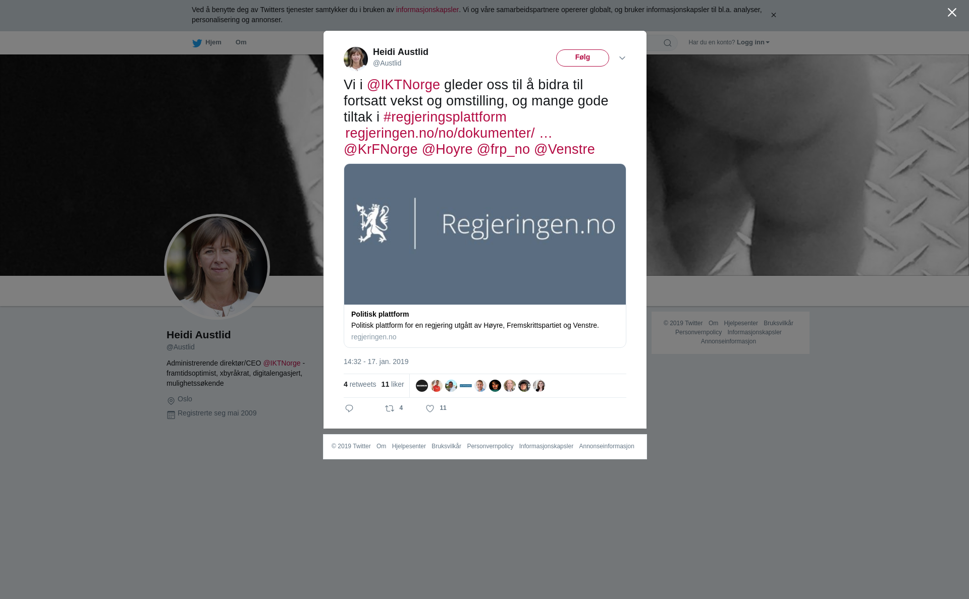 RT @Austlid: Vi i @IKTNorge gleder oss til å bidra til fortsatt vekst og omstilling, og mange gode tiltak i #regjeringsplattform https://t.co/tZPAXXtjYn @KrFNorge @Hoyre @frp_no @Venstre