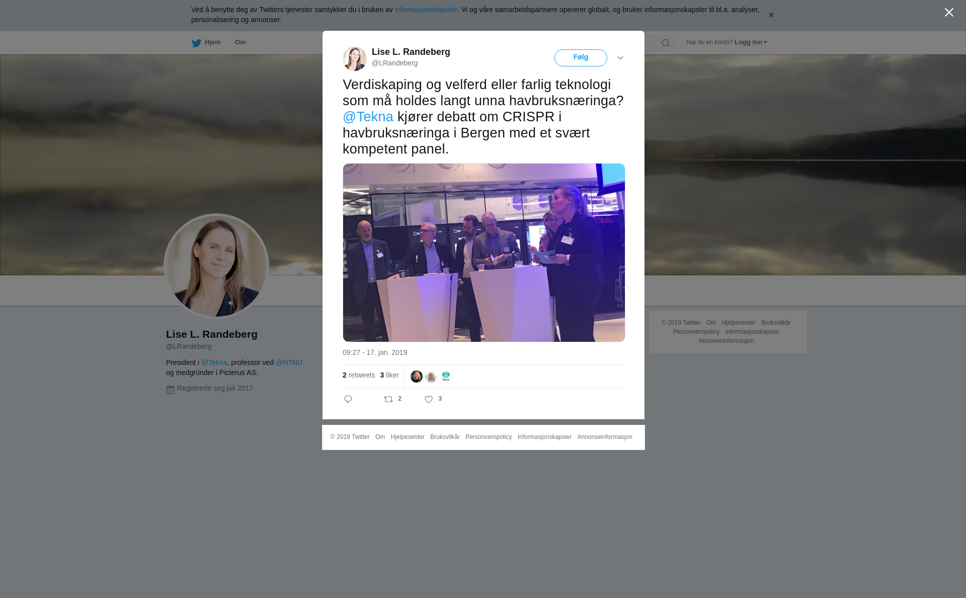 RT @LRandeberg: Verdiskaping og velferd eller farlig teknologi som må holdes langt unna havbruksnæringa? @Tekna kjører debatt om CRISPR…