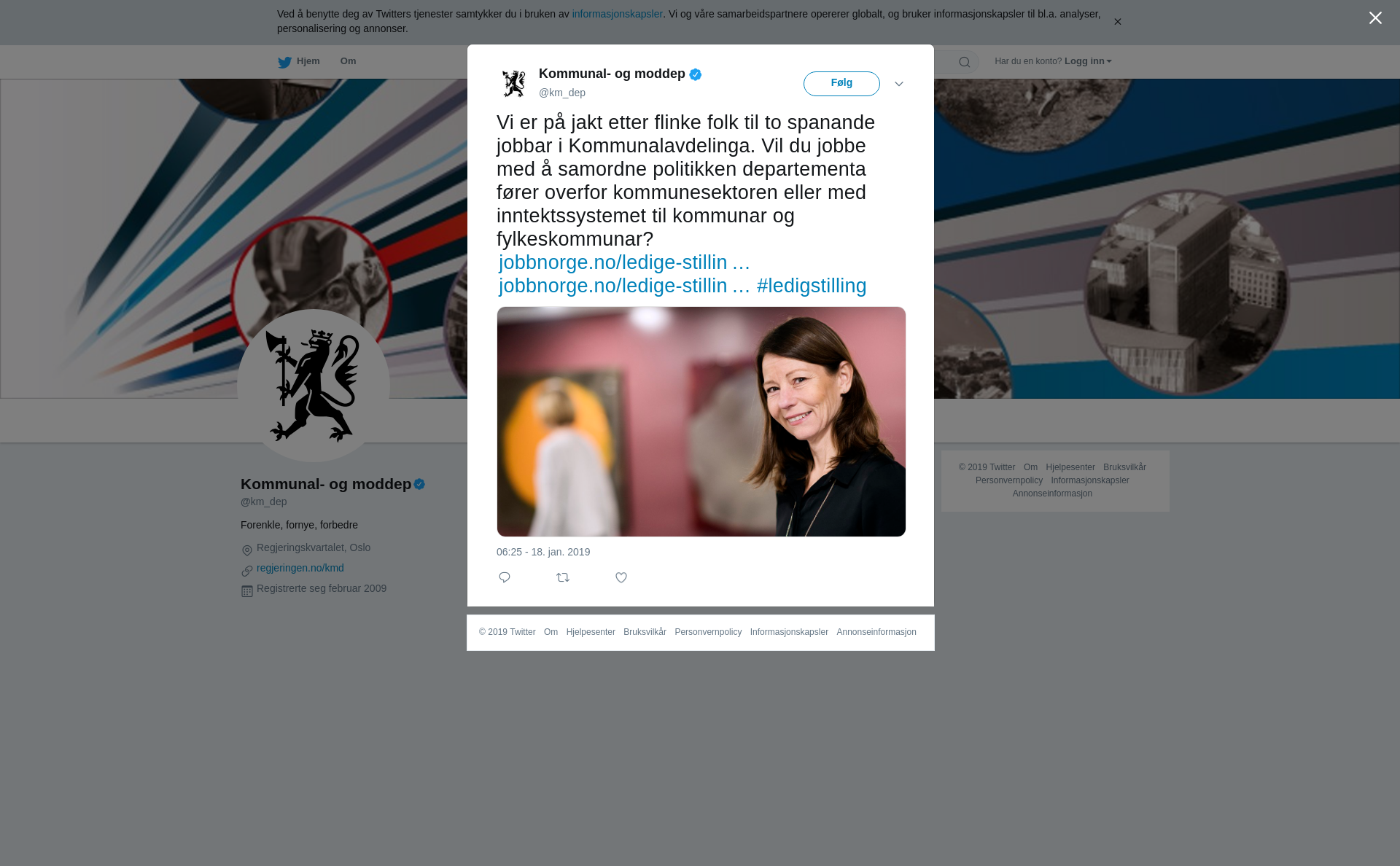 Stillingstittel: Samfunnsviter/økonom/jurist - Ledig stilling som førstekonsulent/rådgiver i Kommunalavdelingen (162857), Arbeidsgiver: Kommunal- og moderniseringsdepartementet, Søknadsfrist: 30. januar 2019
