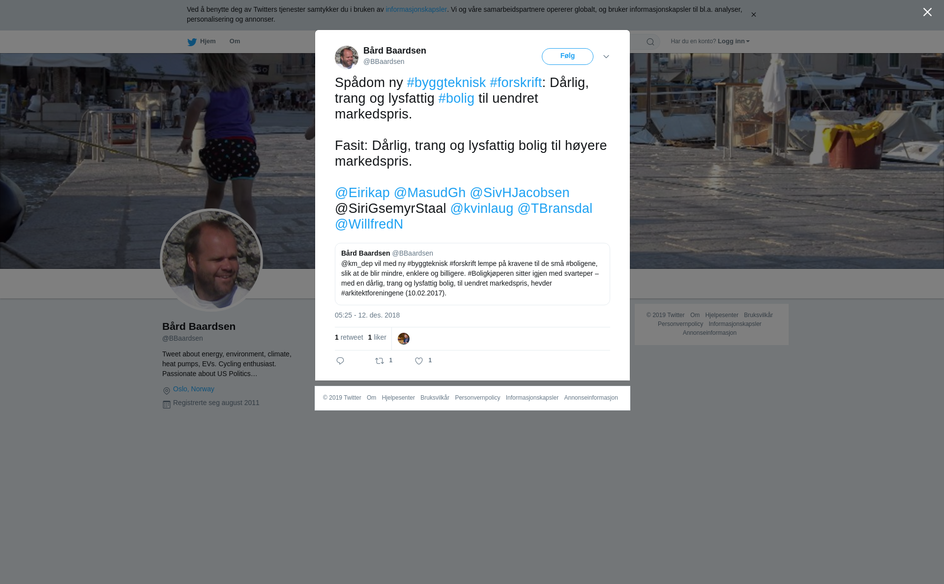 RT @BBaardsen: Spådom ny #byggteknisk #forskrift: Dårlig, trang og lysfattig #bolig til uendret markedspris. Fasit: Dårlig, trang og lysf…