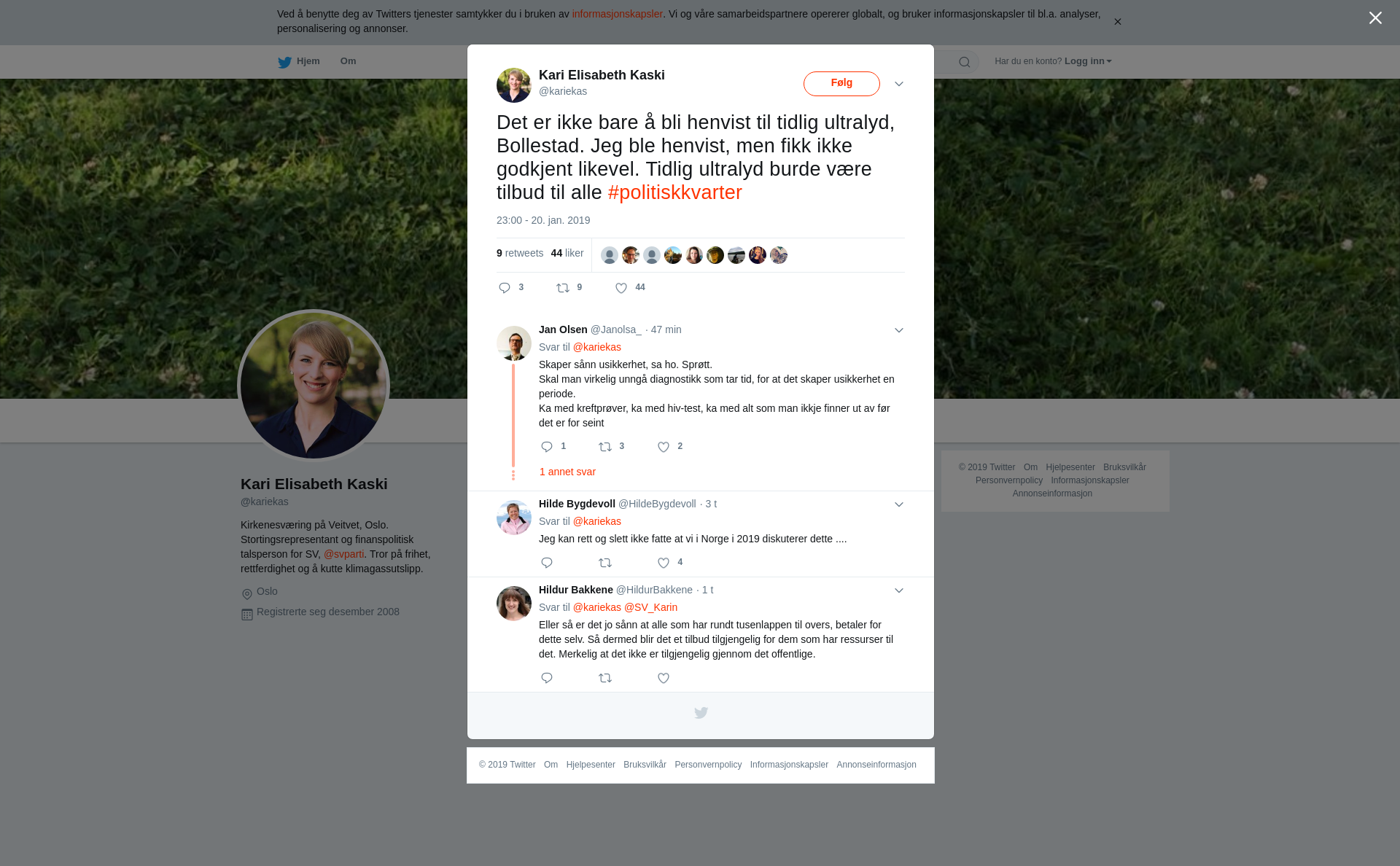 RT @kariekas: Det er ikke bare å bli henvist til tidlig ultralyd, Bollestad. Jeg ble henvist, men fikk ikke godkjent likevel. Tidlig ultralyd burde være tilbud til alle #politiskkvarter