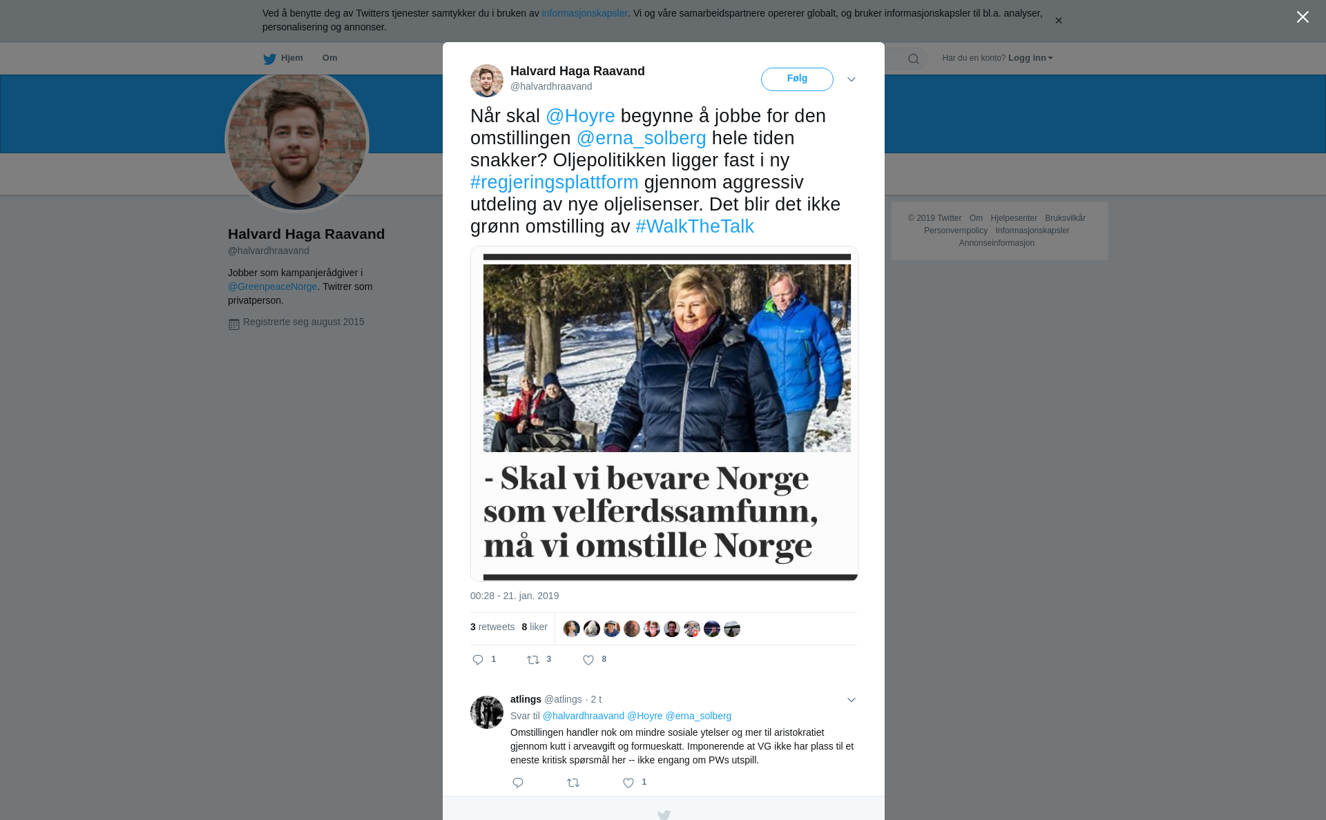 RT @halvardhraavand: Når skal @Hoyre begynne å jobbe for den omstillingen @erna_solberg hele tiden snakker? Oljepolitikken ligger fast i ny #regjeringsplattform gjennom aggressiv utdeling av nye oljelisenser. Det blir det ikke grønn omstilling av #WalkTheTalk https://t.co/zYV5p4kr7G