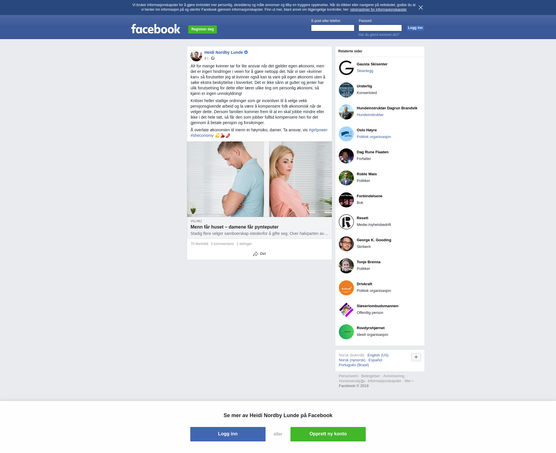 Stadig flere velger samboerskap istedenfor å gifte seg. Over halvparten av samboende par går fra hverandre, og ofte blir en part stående igjen som den store økonomiske taperen. Veldig ofte er dette kvinnen.