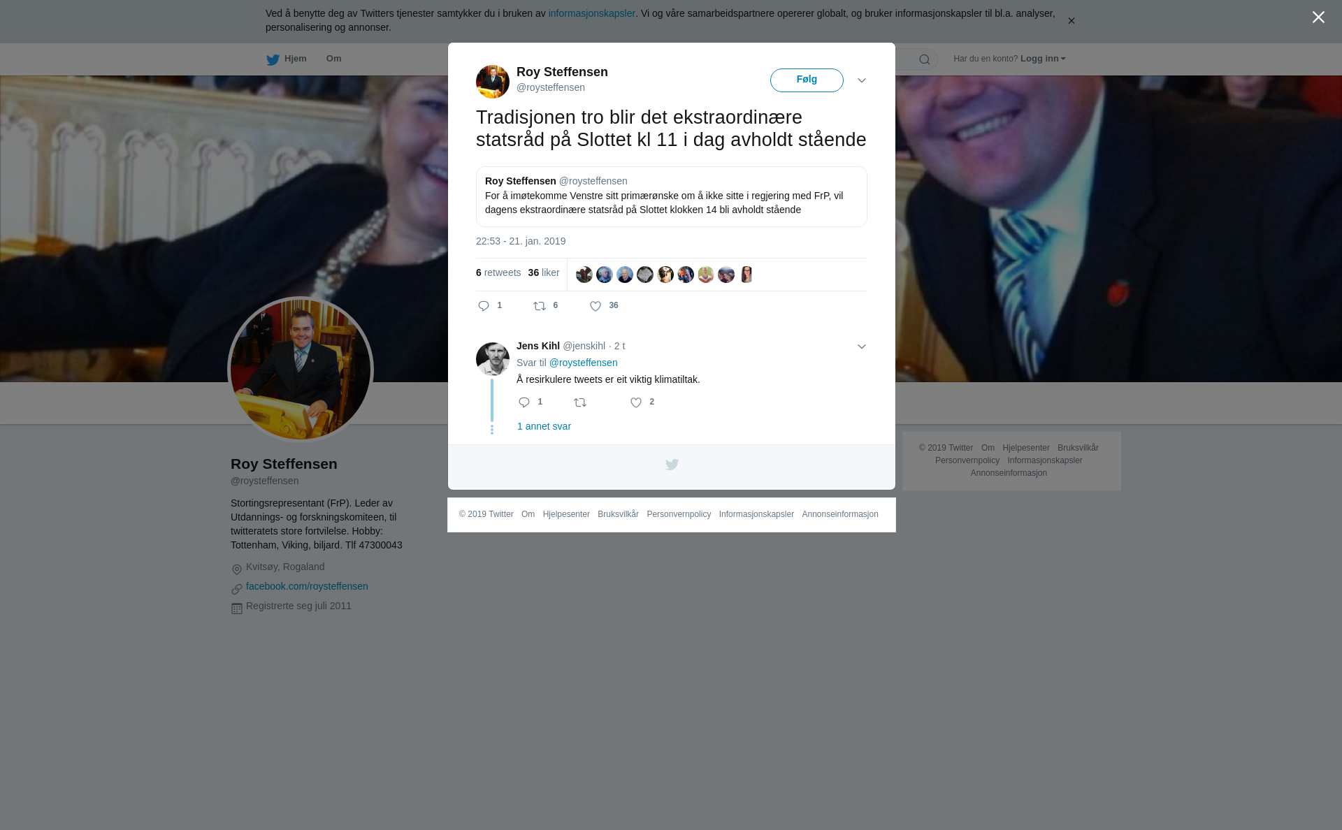RT @roysteffensen: Tradisjonen tro blir det ekstraordinære statsråd på Slottet kl 11 i dag avholdt stående https://t.co/Jb2Ay1446B