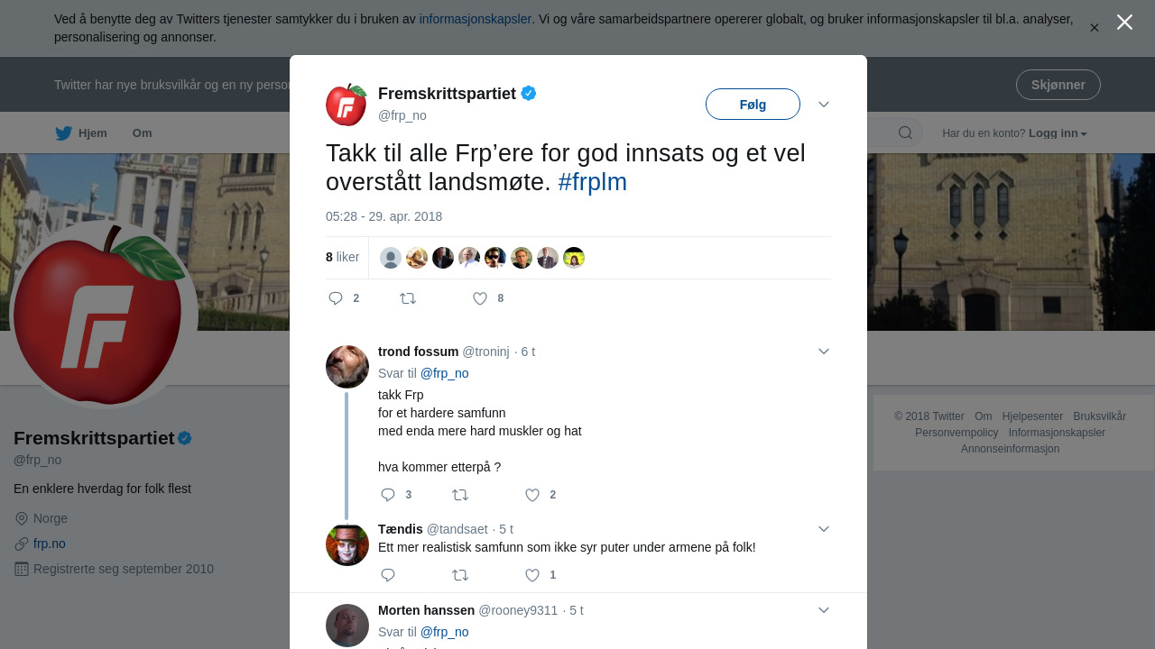 Takk til alle Frp’ere for god innsats og et vel overstått landsmøte. #frplm