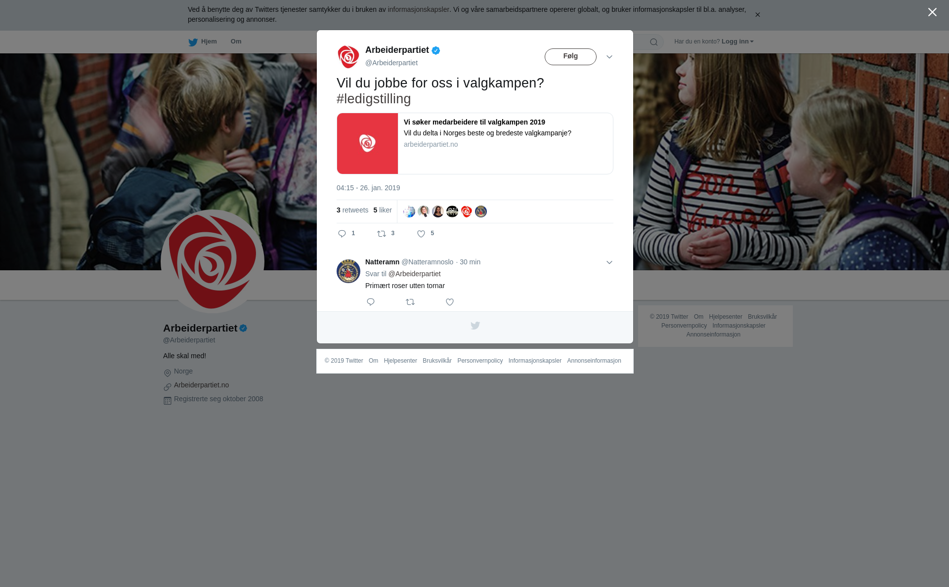 Vil du jobbe for oss i valgkampen?#ledigstilling https://t.co/BzVTkrmw4h