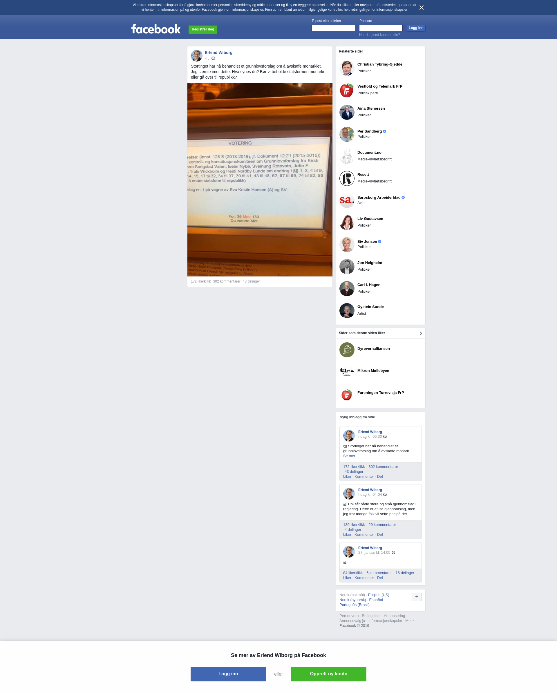 Stortinget har nå behandlet et grunnlovsforslag om å avskaffe monarkiet. Jeg stemte imot dette. Hva synes du? Bør vi beholde statsformen monarki eller gå over til republikk?