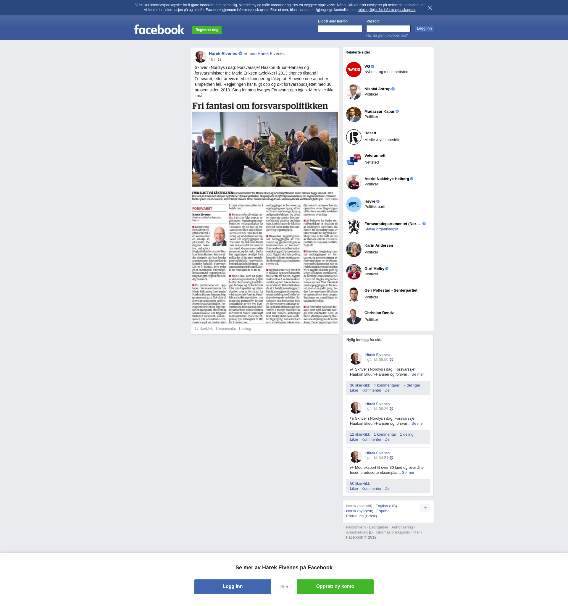 Skriver i Nordlys i dag: Forsvarssjef Haakon Bruun-Hansen og forsvarsminister Ine Marie Eriksen avdekket i 2013 tingnes tilstand i Forsvaret, etter årevis med tilsløringer og tåkeprat. Å hevde noe annet er simpelthen feil. Regjeringen har fulgt opp og økt forsvarsbudsjettet med 30 prosent siden 2013. Steg for steg bygges Forsvaret opp igjen. Men vi er ikke i mål.