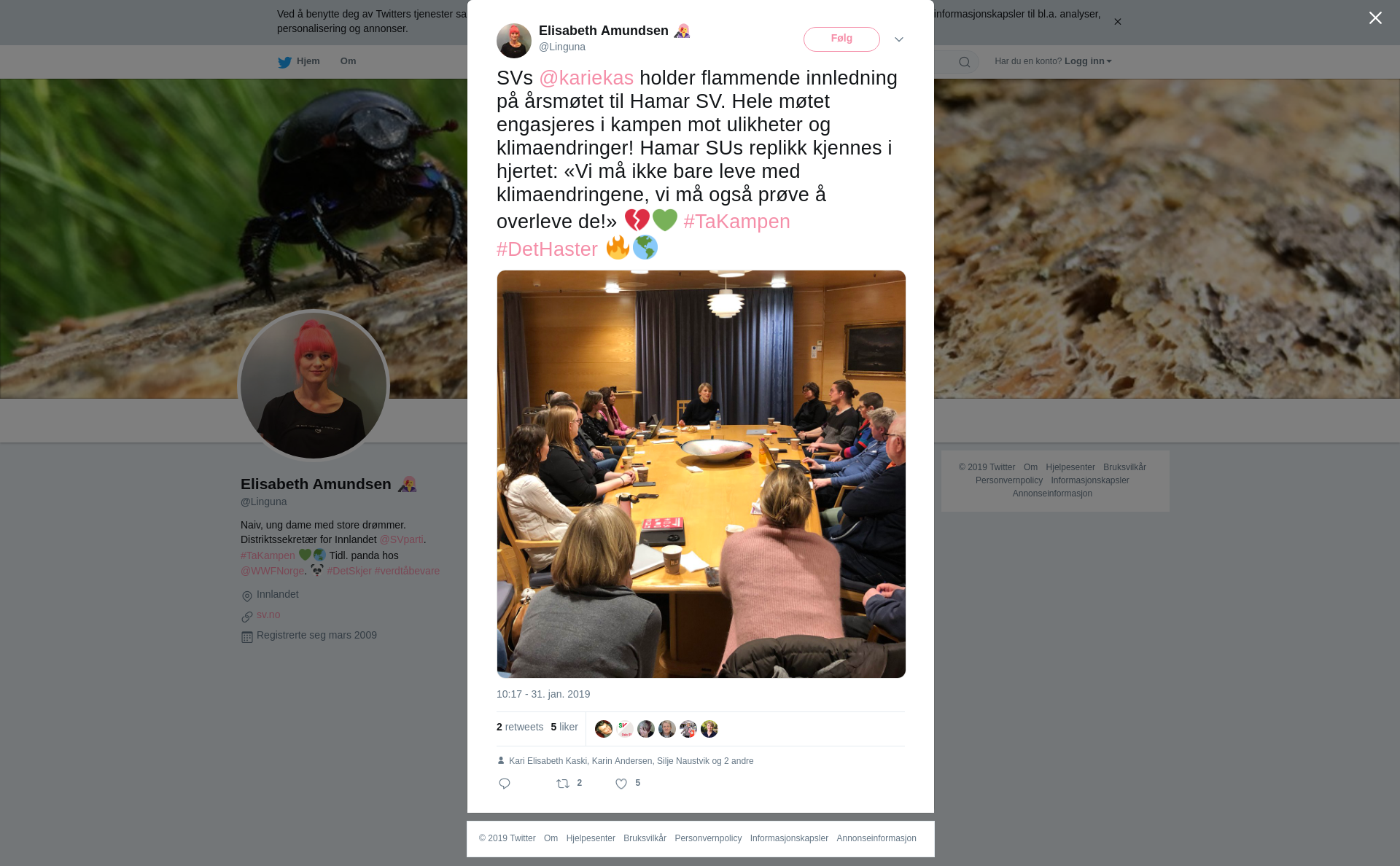 RT @Linguna: SVs @kariekas holder flammende innledning på årsmøtet til Hamar SV. Hele møtet engasjeres i kampen mot ulikheter og klimaendringer! Hamar SUs replikk kjennes i hjertet: «Vi må ikke bare leve med klimaendringene, vi må også prøve å overleve de!» 💔💚 #TaKampen