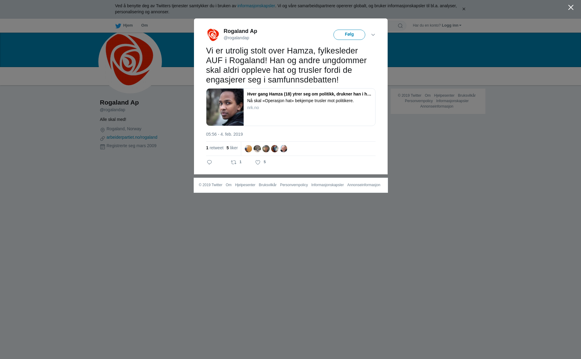 RT @rogalandap: Vi er utrolig stolt over Hamza, fylkesleder AUF i Rogaland! Han og andre ungdommer skal aldri oppleve hat og trusler fordi de engasjerer seg i samfunnsdebatten! https://t.co/yU632u7kew