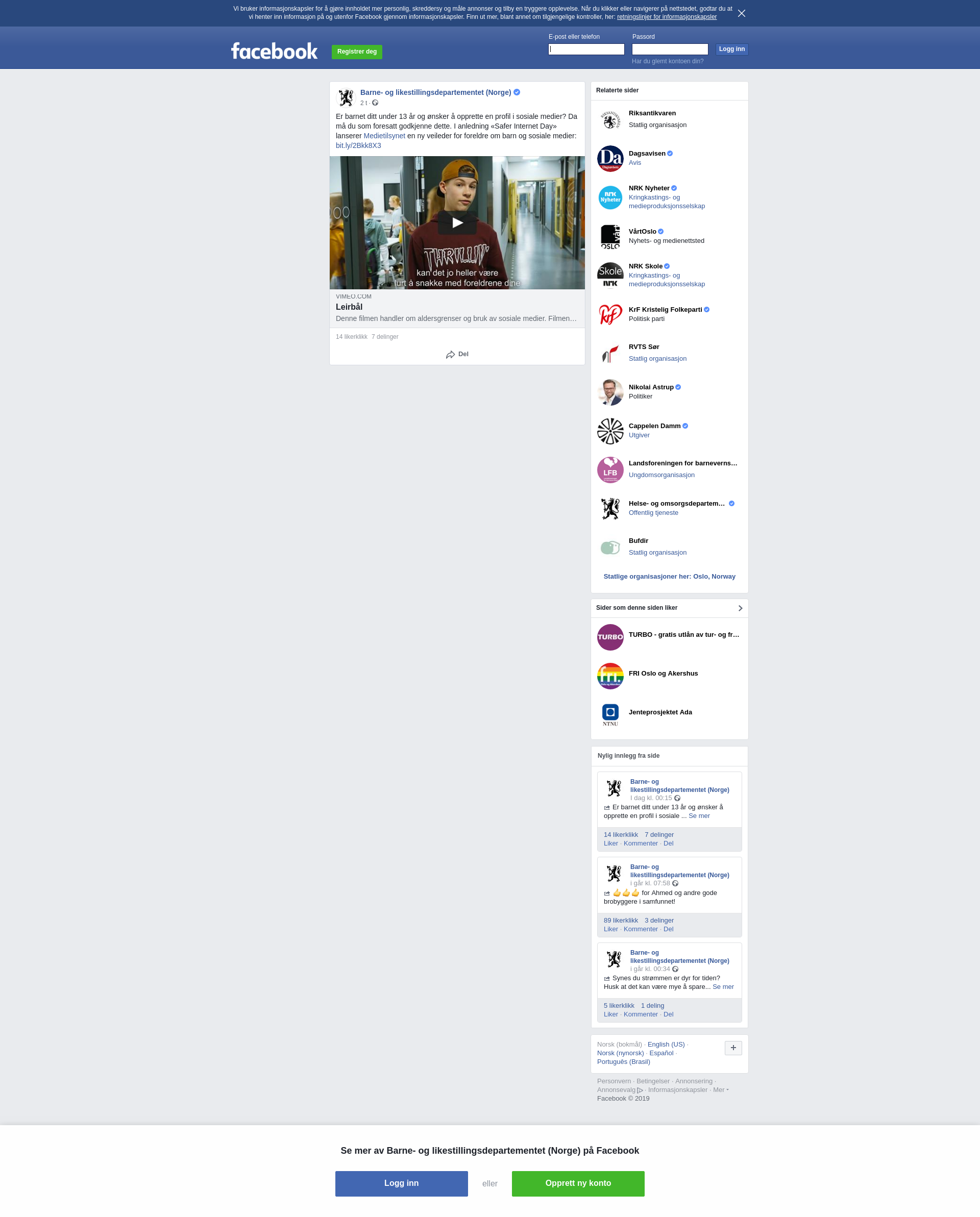 Er barnet ditt under 13 år og ønsker å opprette en profil i sosiale medier? Da må du som foresatt godkjenne dette. I anledning «Safer Internet Day» lanserer Medietilsynet en ny veileder for foreldre om barn og sosiale medier: bit.ly/2Bkk8X3