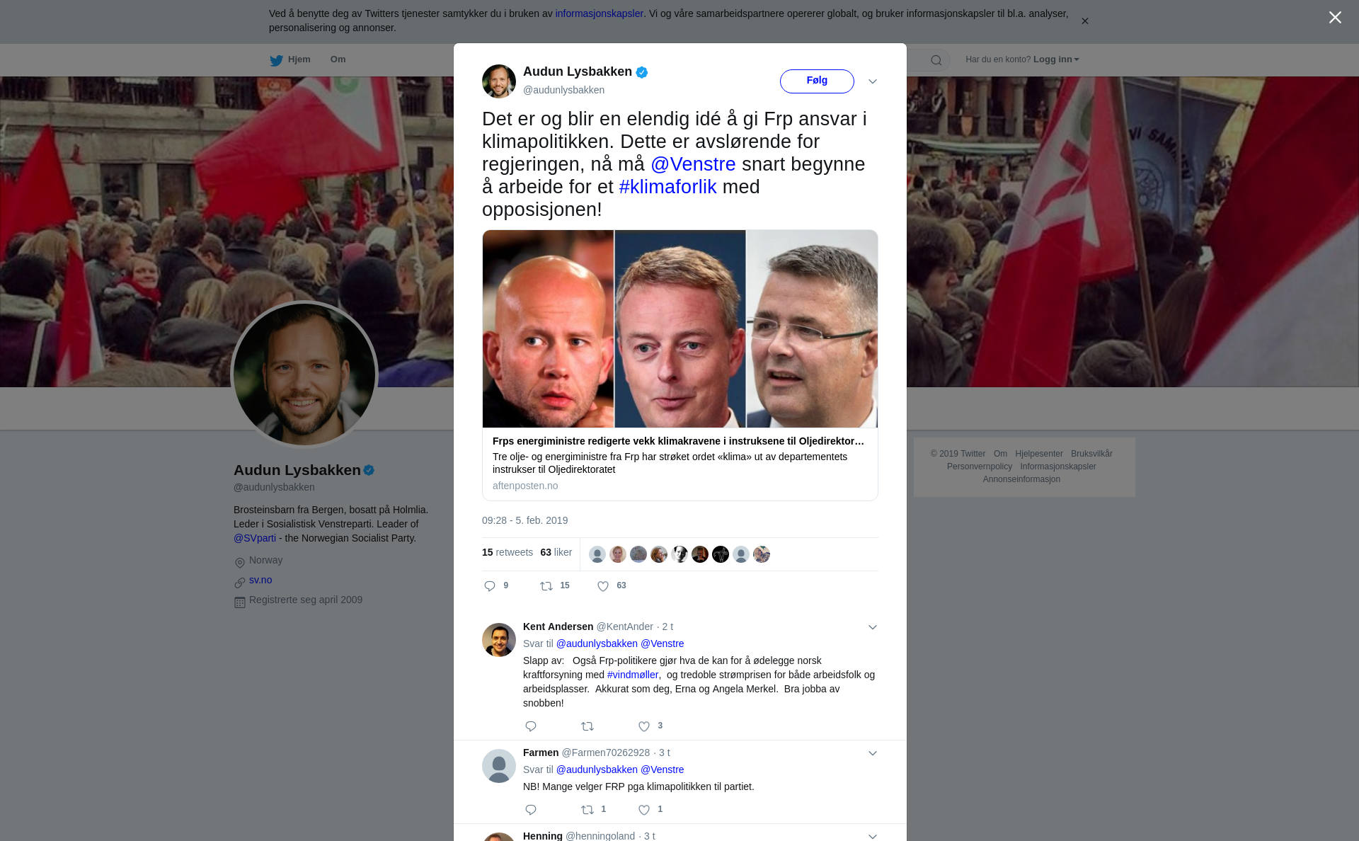 Det er og blir en elendig idé å gi Frp ansvar i klimapolitikken. Dette er avslørende for regjeringen, nå må @Venstre snart begynne å arbeide for et #klimaforlik med opposisjonen! https://t.co/LpBjOG08Nx