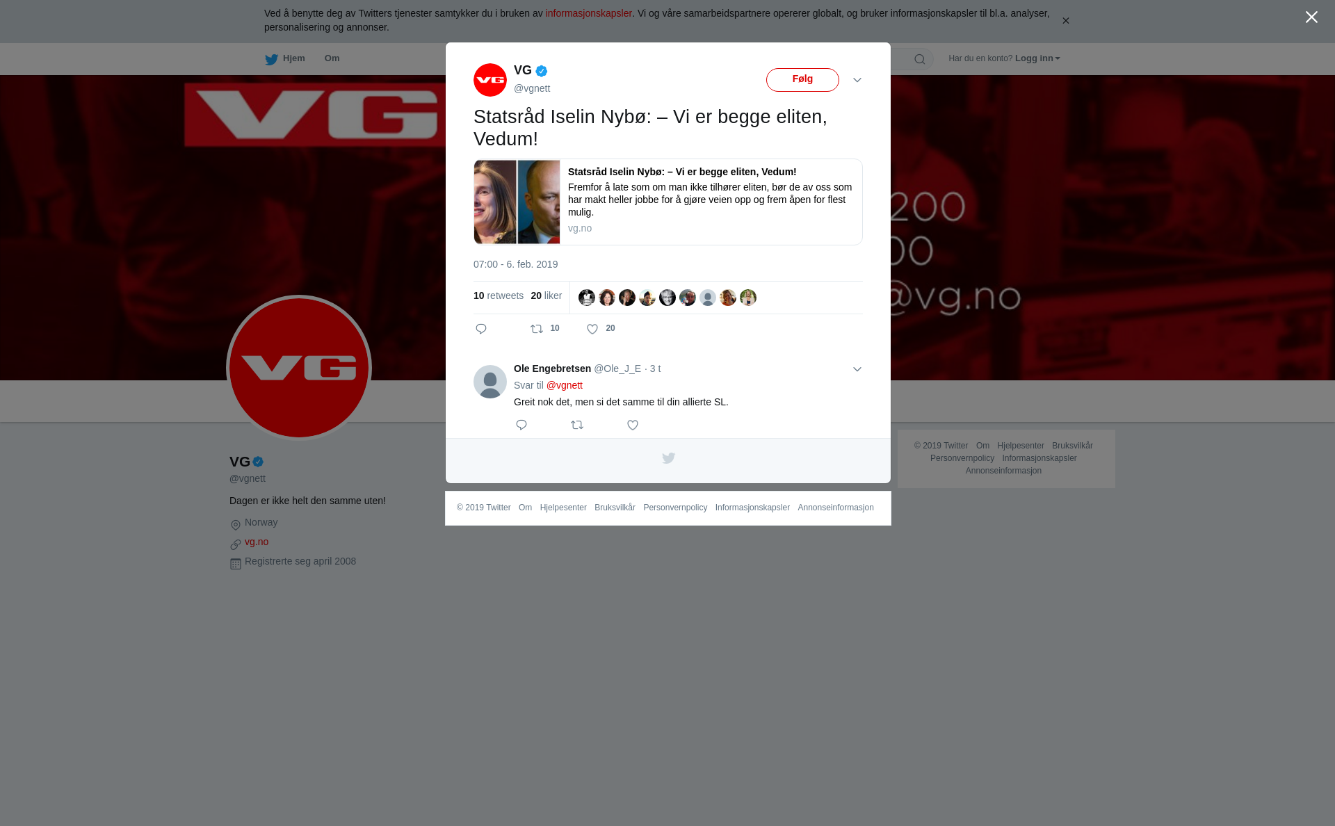 RT @vgnett: Statsråd Iselin Nybø: – Vi er begge eliten, Vedum! https://t.co/vj9Ze2VJFN