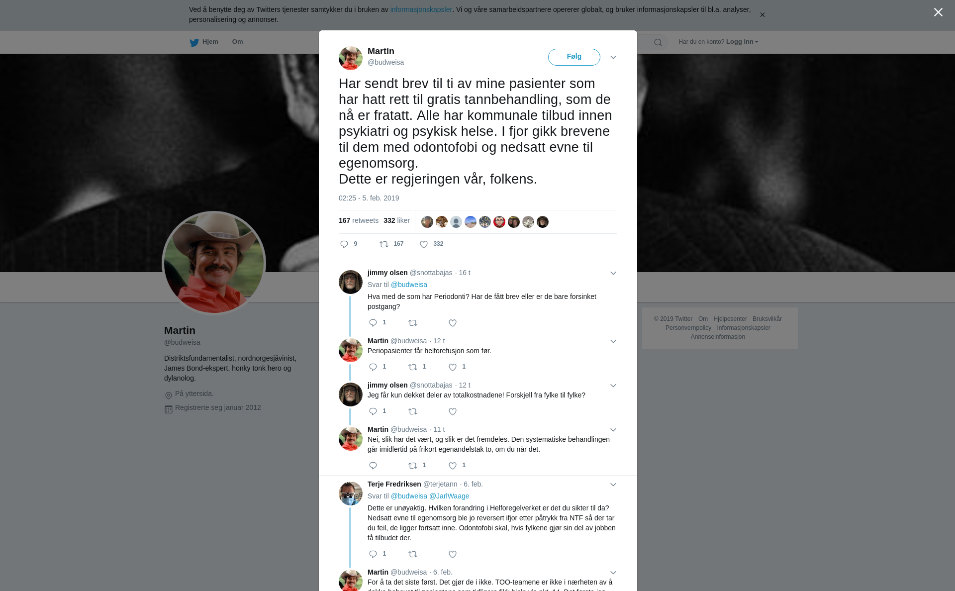 RT @budweisa: Har sendt brev til ti av mine pasienter som har hatt rett til gratis tannbehandling, som de nå er fratatt. Alle har kommunale tilbud innen psykiatri og psykisk helse. I fjor gikk brevene til dem med odontofobi og nedsatt evne til egenomsorg.