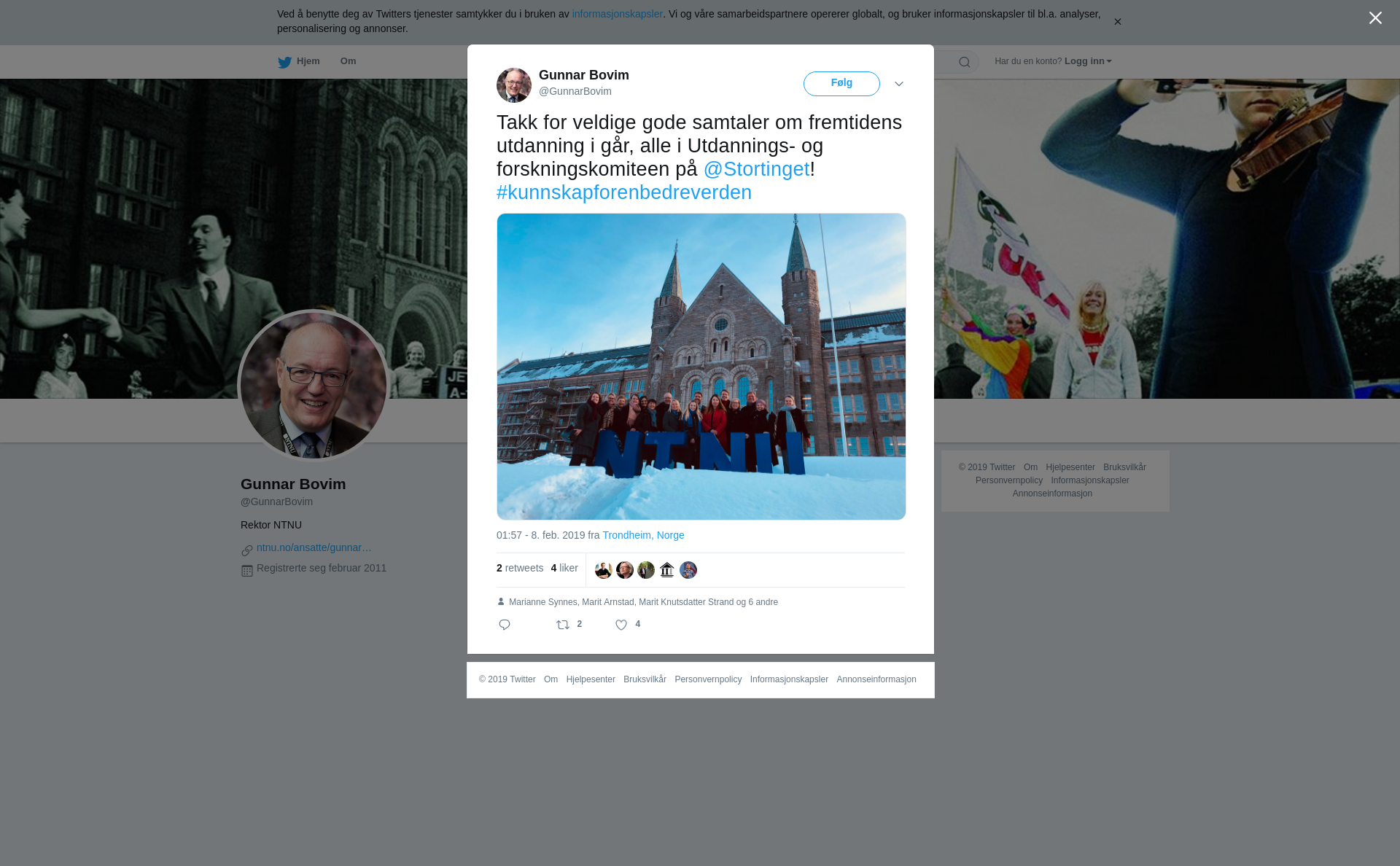 RT @GunnarBovim: Takk for veldige gode samtaler om fremtidens utdanning i går, alle i Utdannings- og forskningskomiteen på @Stortinget! #kunnskapforenbedreverden https://t.co/xwYHiETmsK